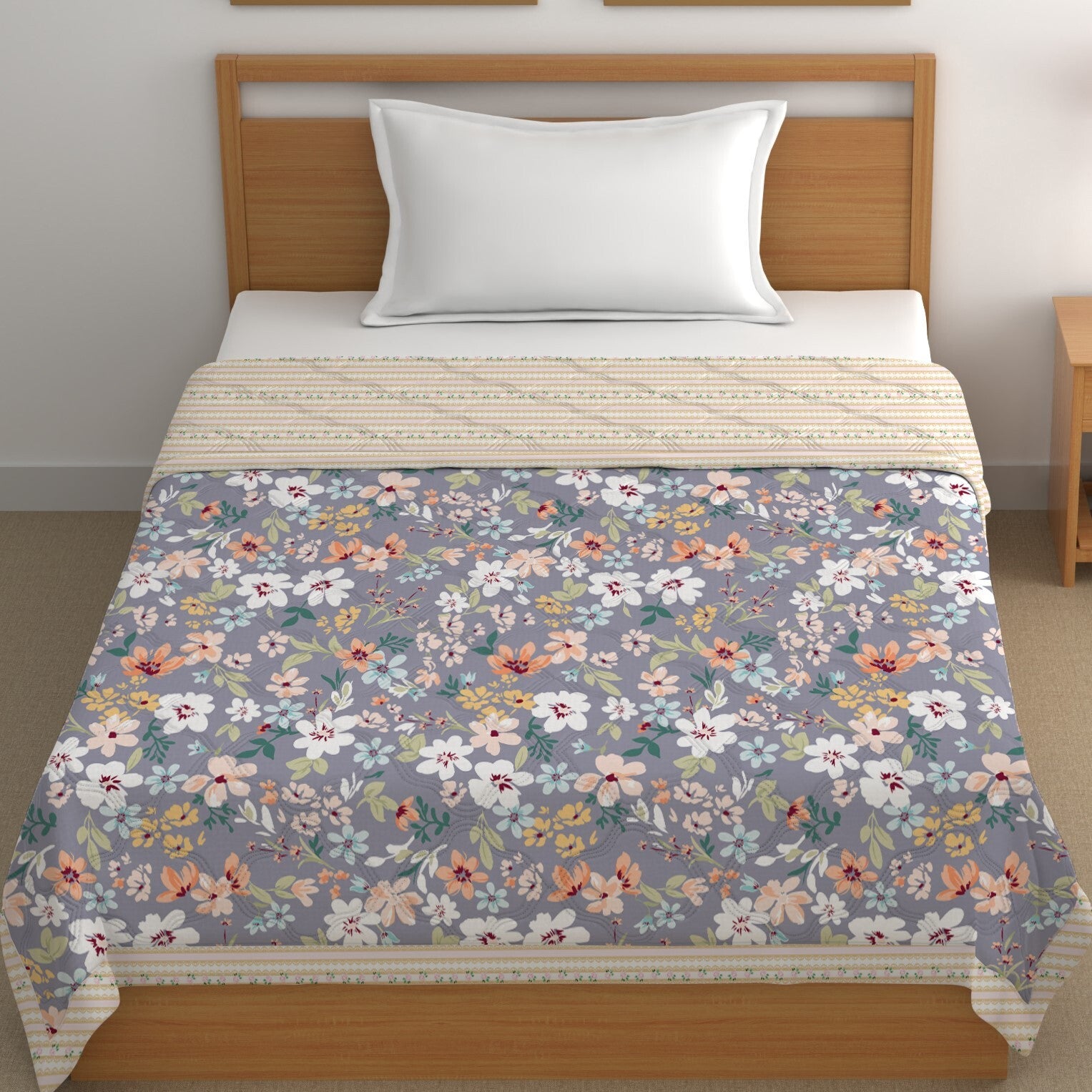 Give your bedroom a stylish makeover with this beautiful Single bed comforter from CHHAVI INDIA Inspired by nature, the comforter is 100% premium quality microfiber that is soft to touch and comfortable on the skin. It delivers maximum relaxation and comfort while sleeping. Suitable for all seasons and a perfect addition to your bedroom linen! Features Included Components - 1 Comforter
