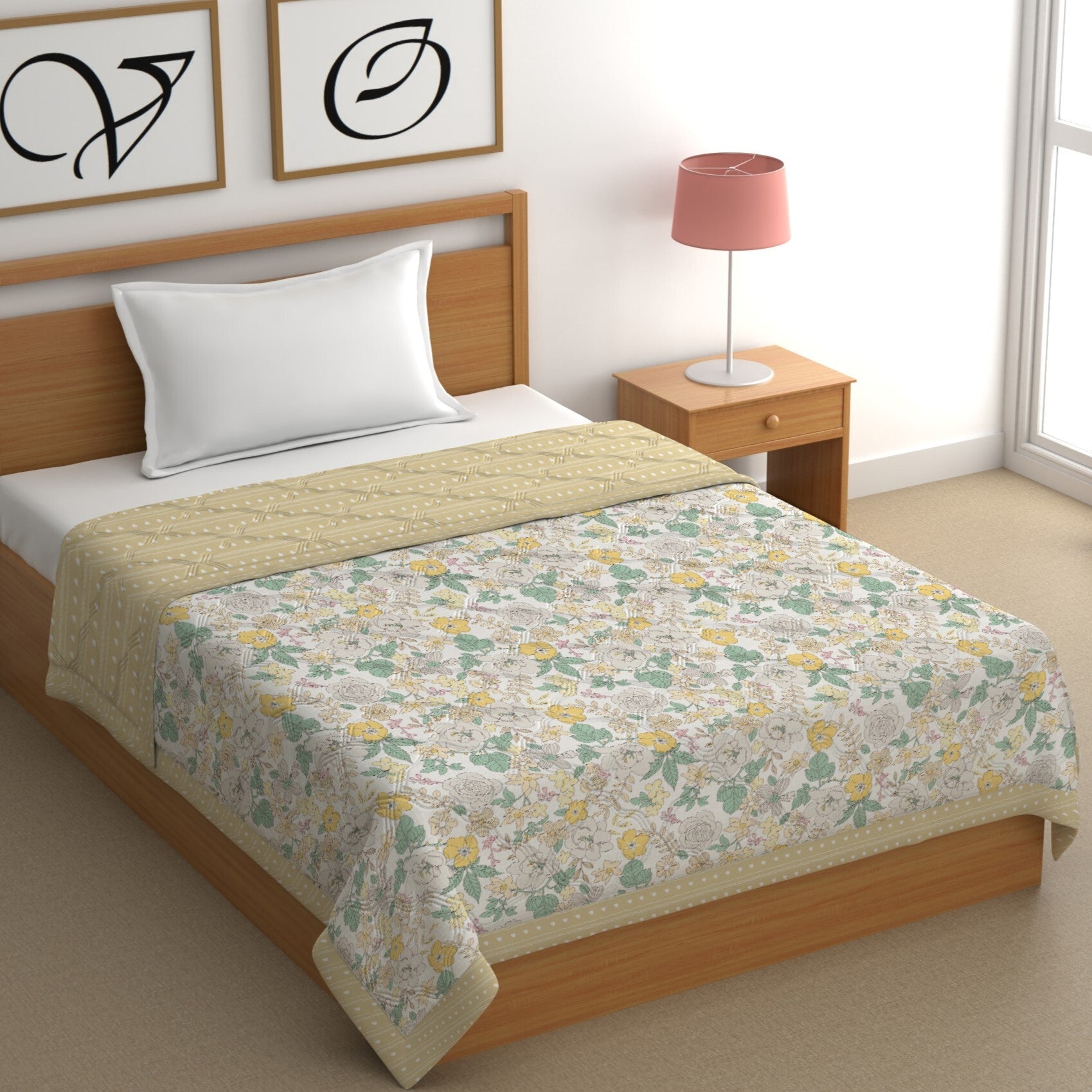 Give your bedroom a stylish makeover with this beautiful Single bed comforter from CHHAVI INDIA Inspired by nature, the comforter is 100% premium quality microfiber that is soft to touch and comfortable on the skin. It delivers maximum relaxation and comfort while sleeping. Suitable for all seasons and a perfect addition to your bedroom linen! Features Included Components - 1 Comforter
