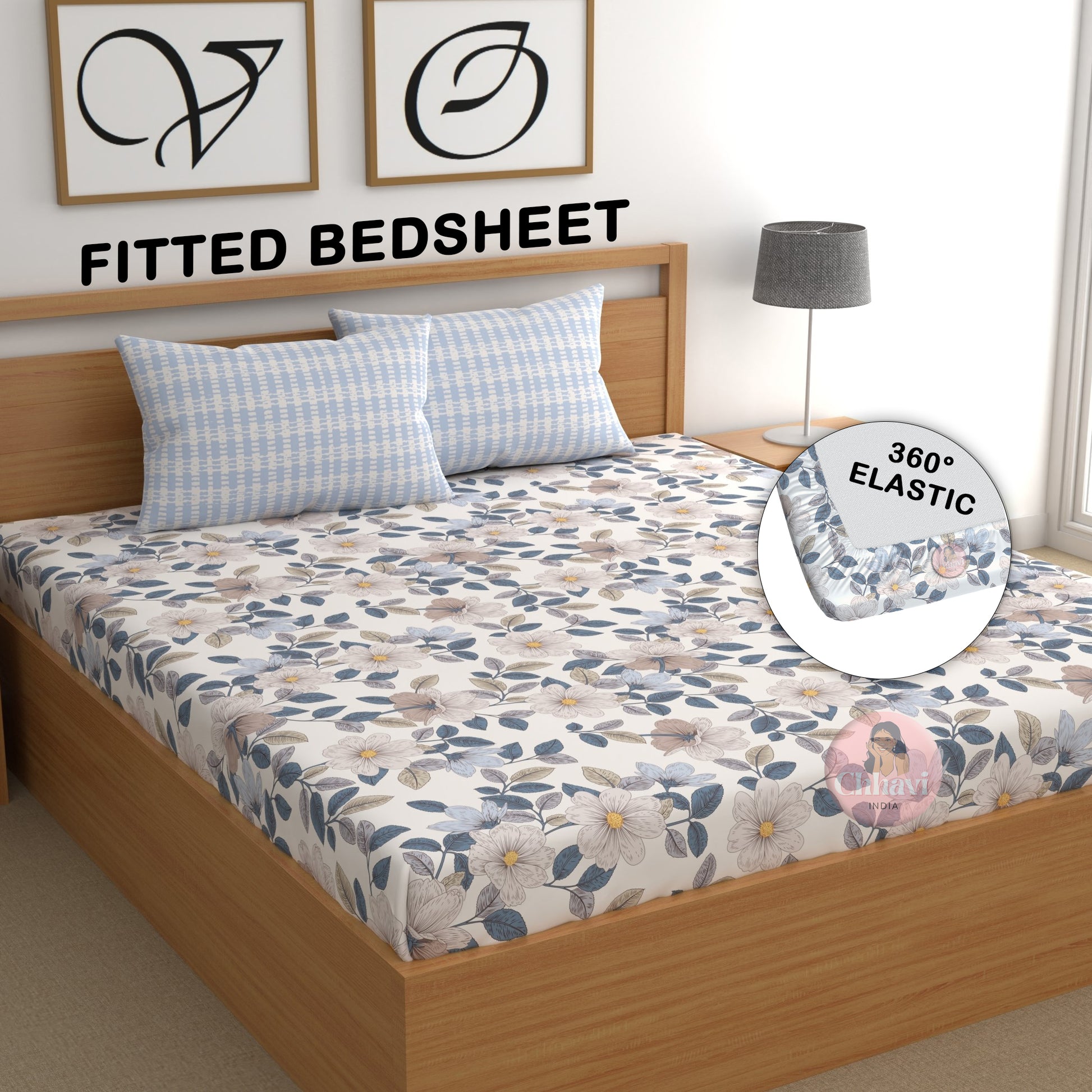 CHHAVI INDIA 210 TC Microfiber Double Fitted Size Printed Bedsheet