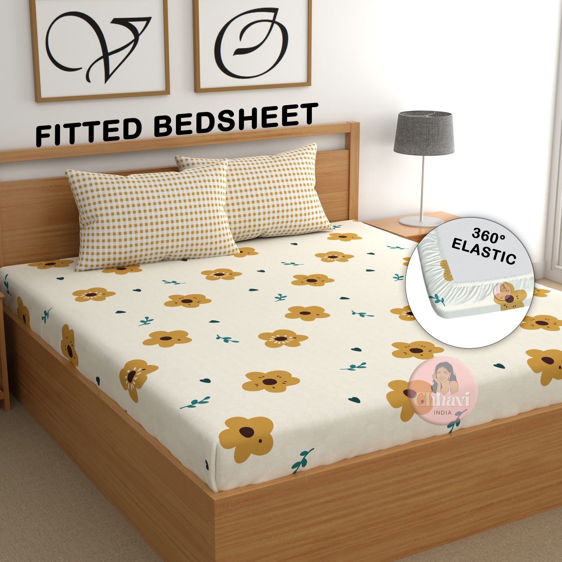 CHHAVI INDIA 210 TC Microfiber Double Fitted Size Printed Bedsheet