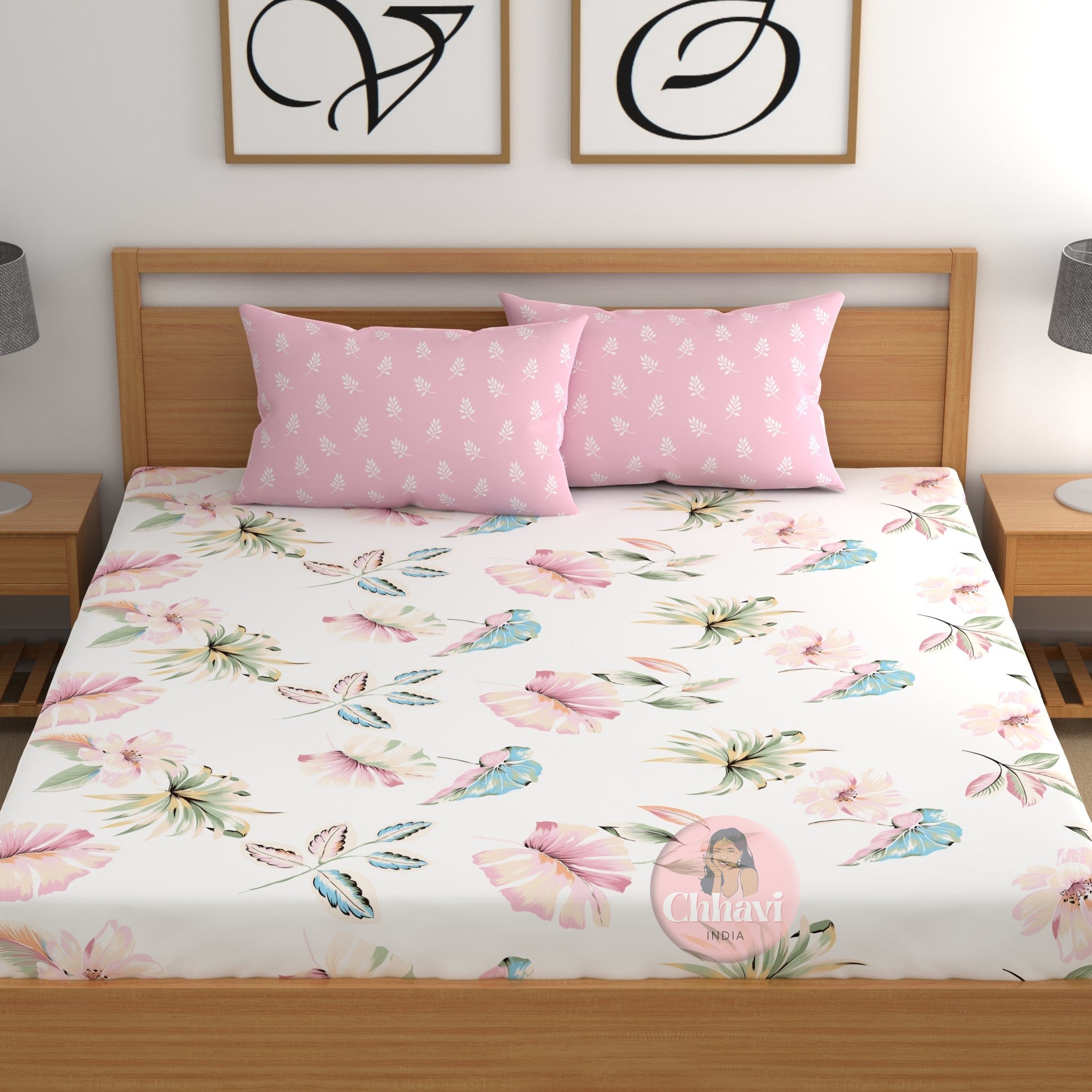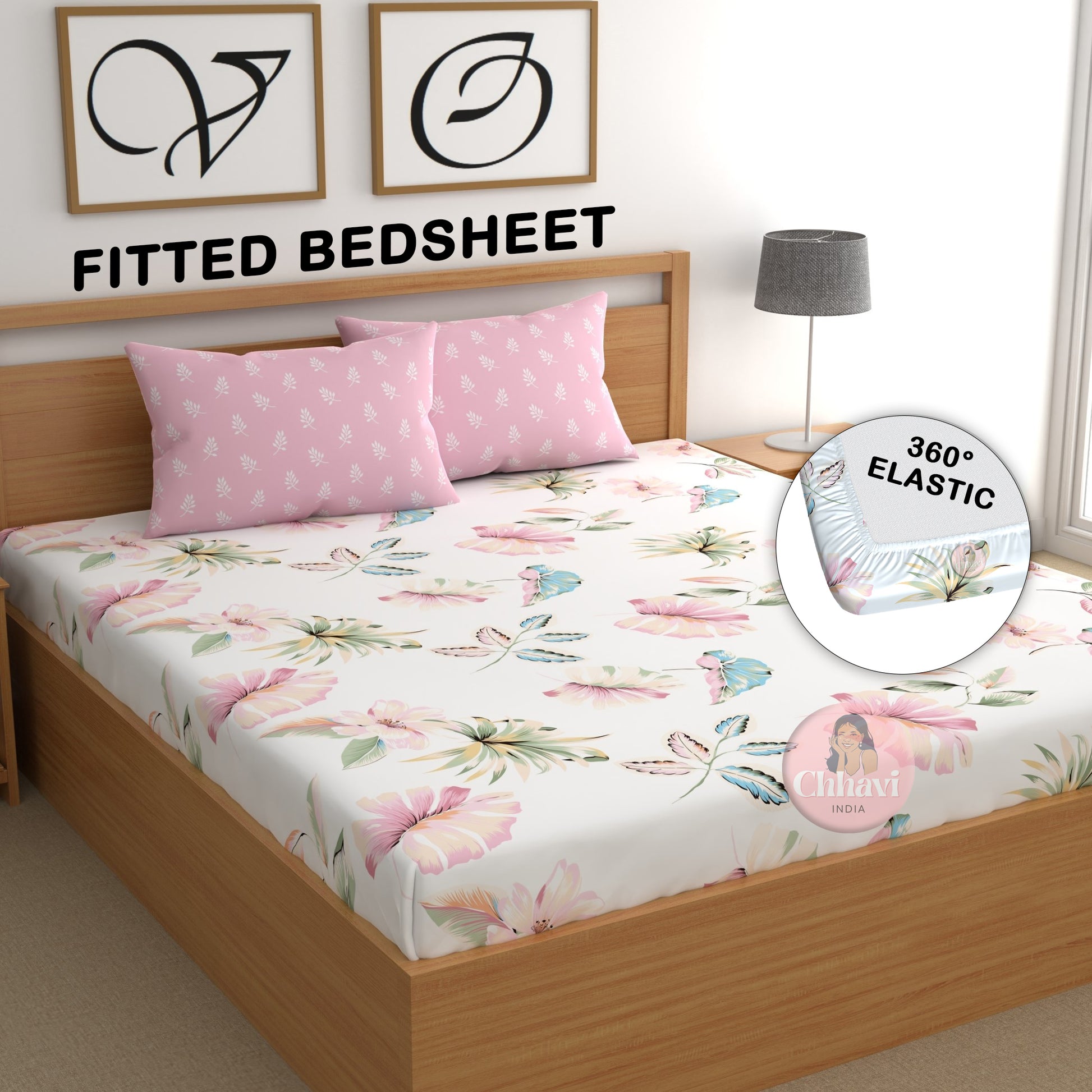 CHHAVI INDIA 210 TC Microfiber Double Fitted Size Printed Bedsheet