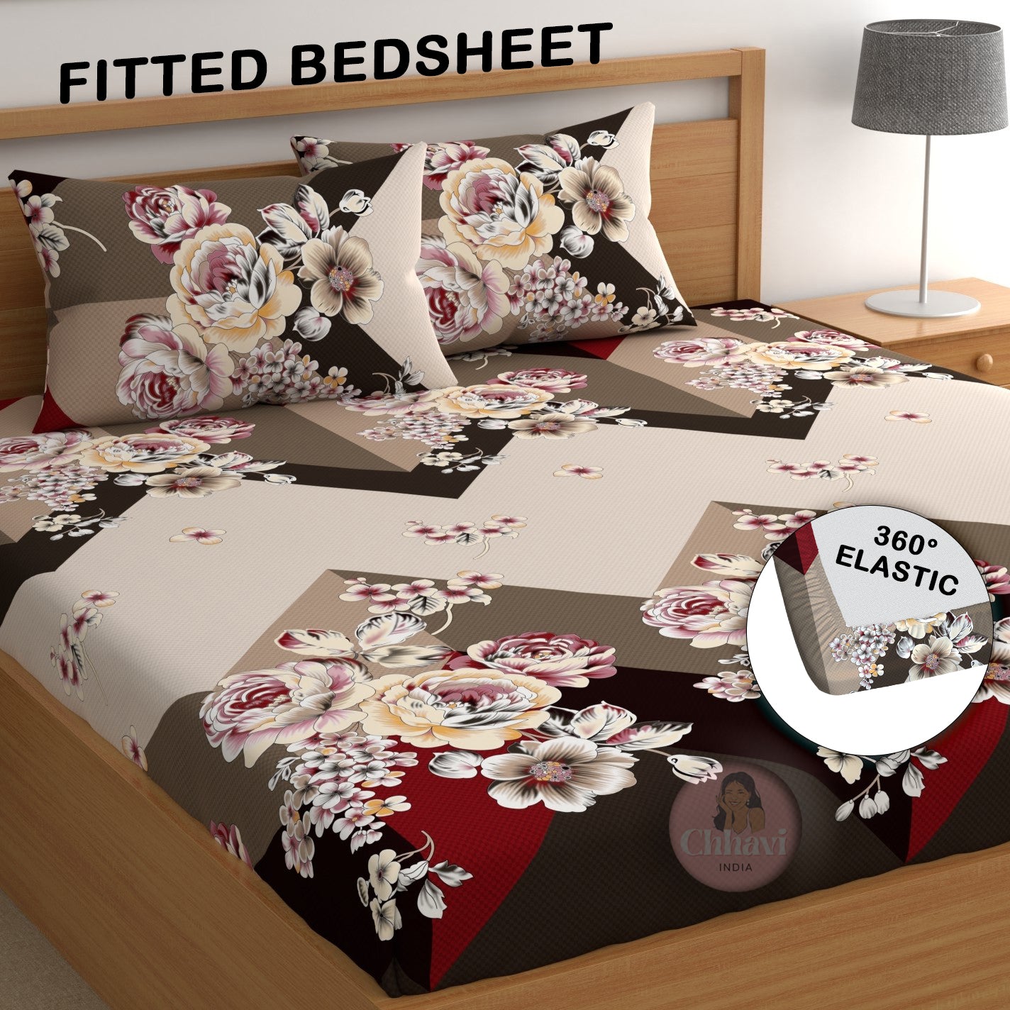 CHHAVI INDIA 210 TC Microfiber Double Fitted Size Printed Bedsheet