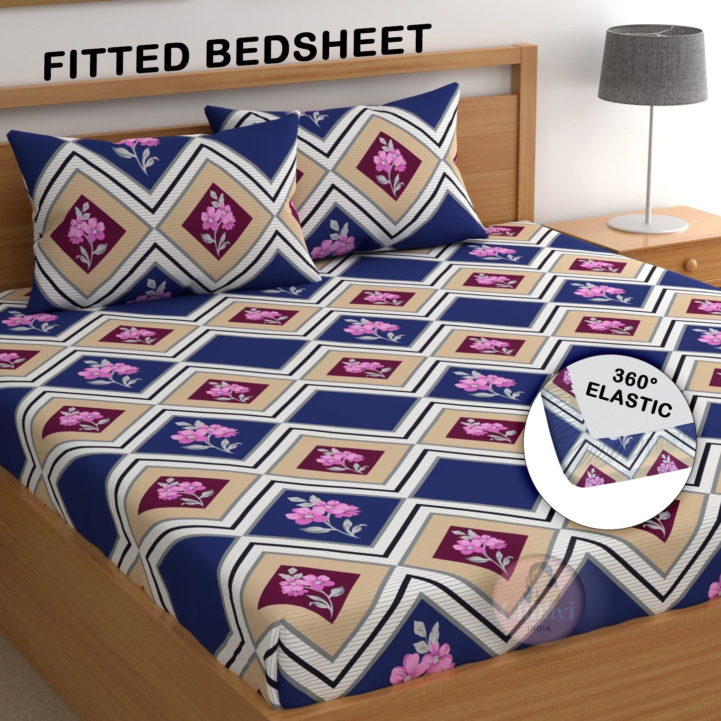 CHHAVI INDIA 210 TC Microfiber Double Fitted Size Printed Bedsheet