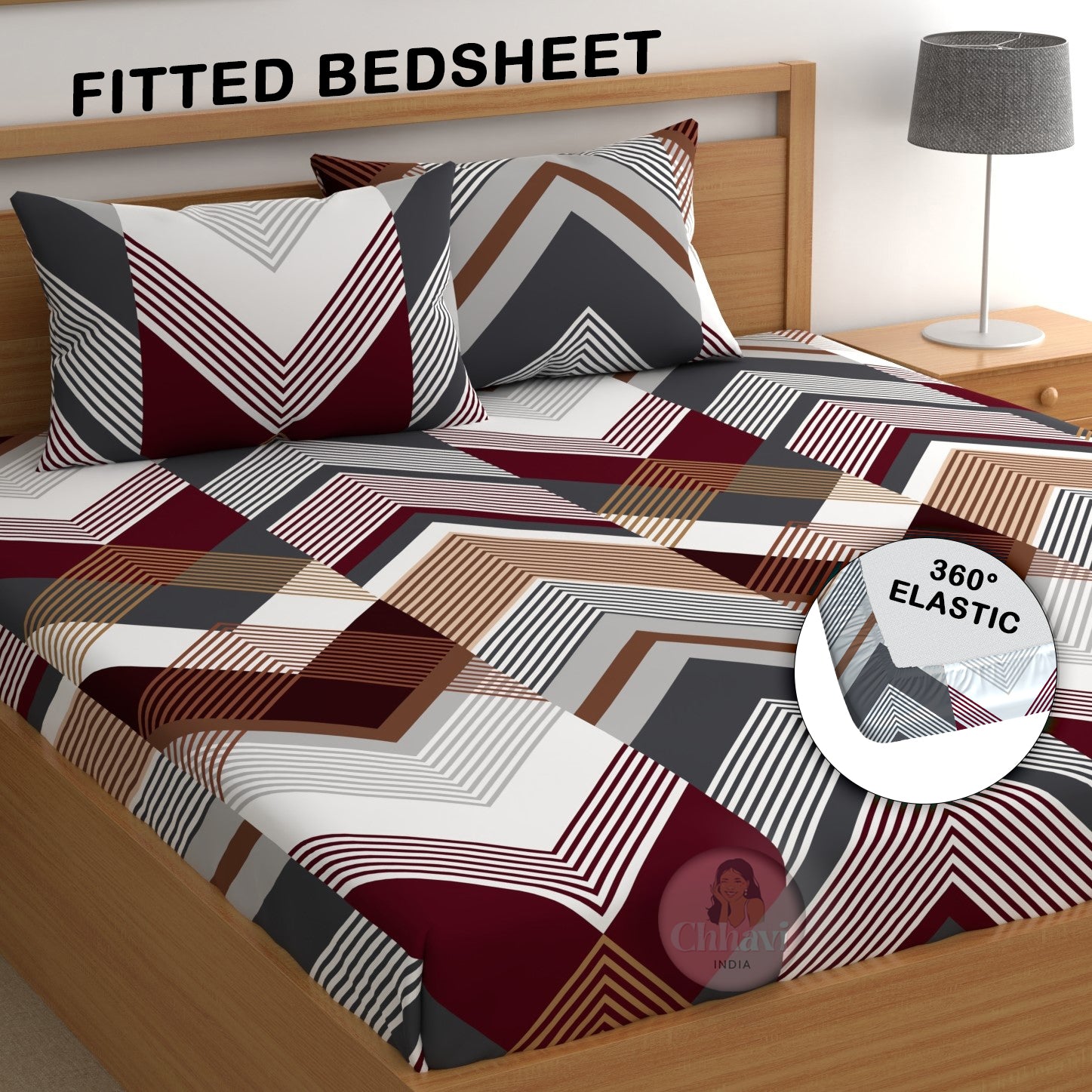 CHHAVI INDIA 210 TC Microfiber Double Fitted Size Printed Bedsheet