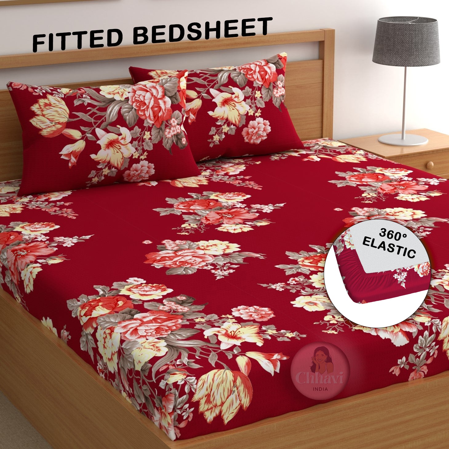 CHHAVI INDIA 210 TC Microfiber Double Fitted Size Printed Bedsheet