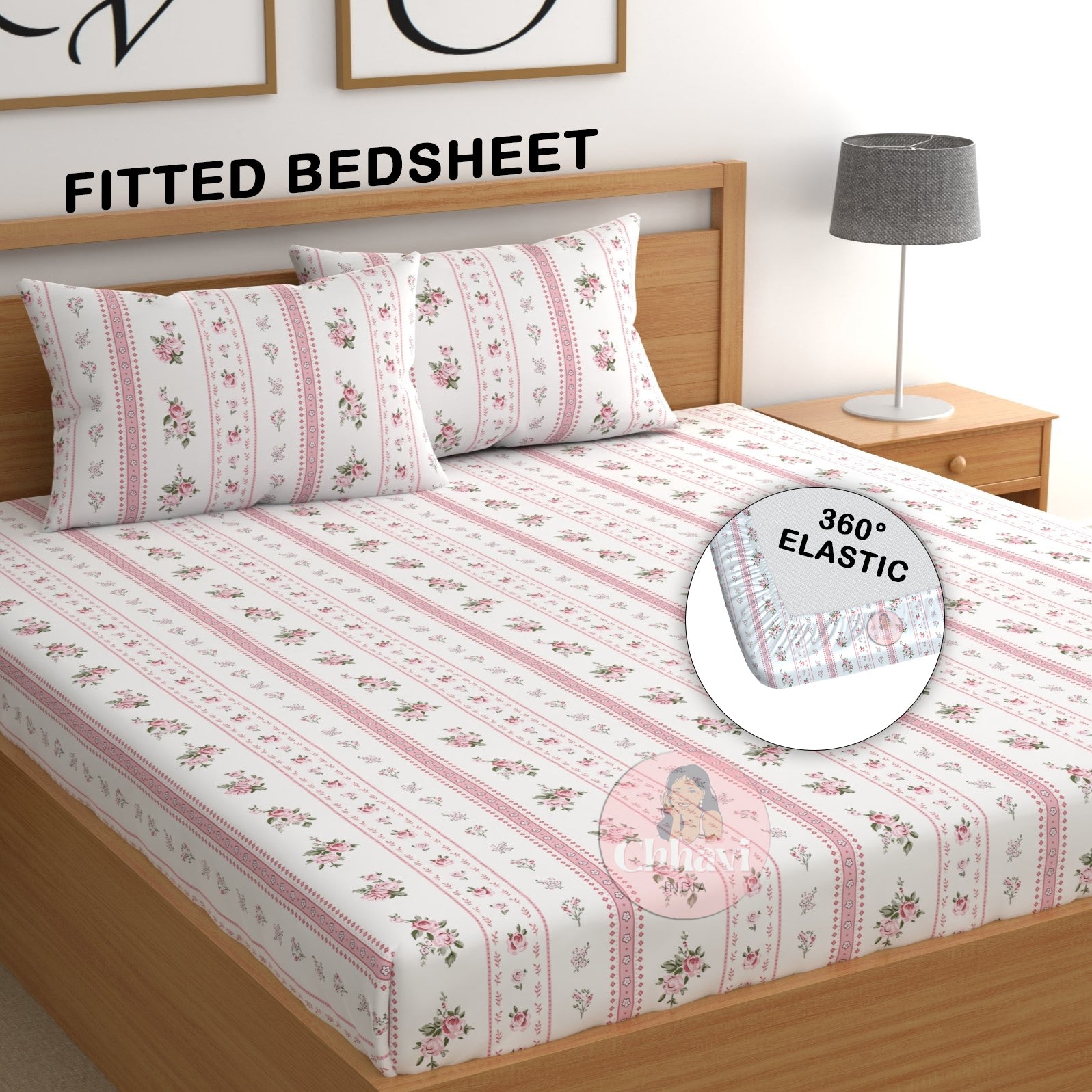 CHHAVI INDIA 210 TC Microfiber Double Fitted Size Printed Bedsheet