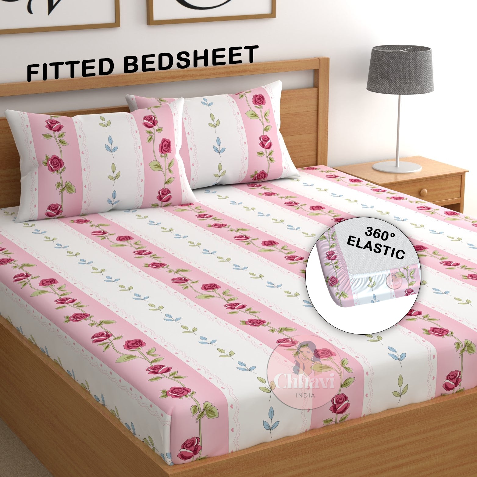 CHHAVI INDIA 210 TC Microfiber Double Fitted Size Printed Bedsheet
