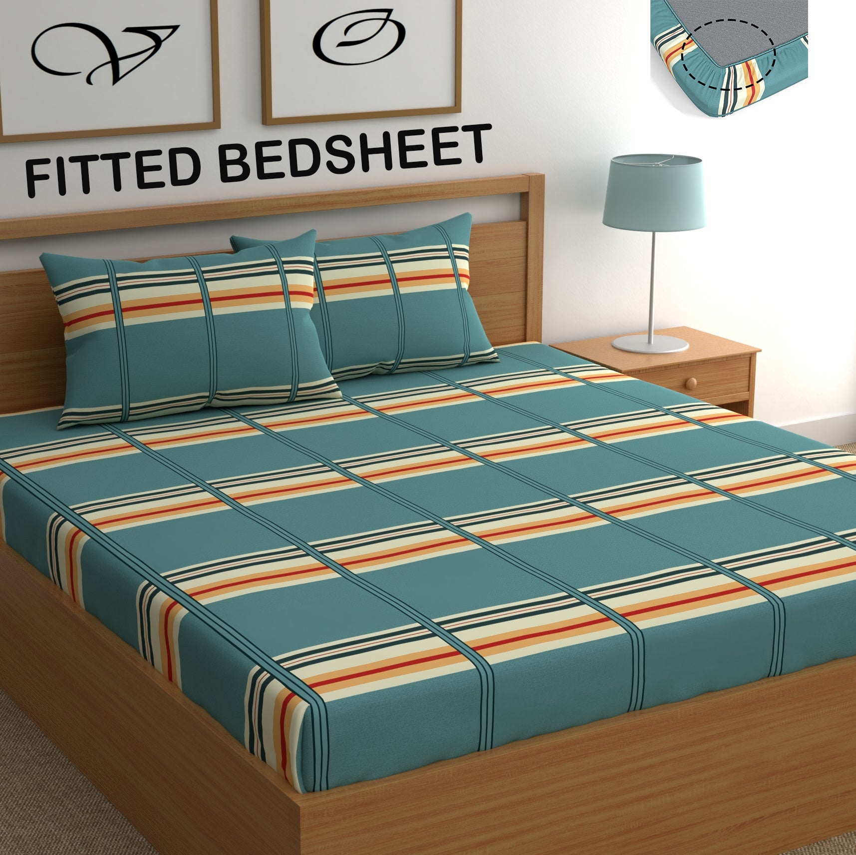 CHHAVI INDIA 210 TC Microfiber Fitted Double Size Printed Bedsheet
