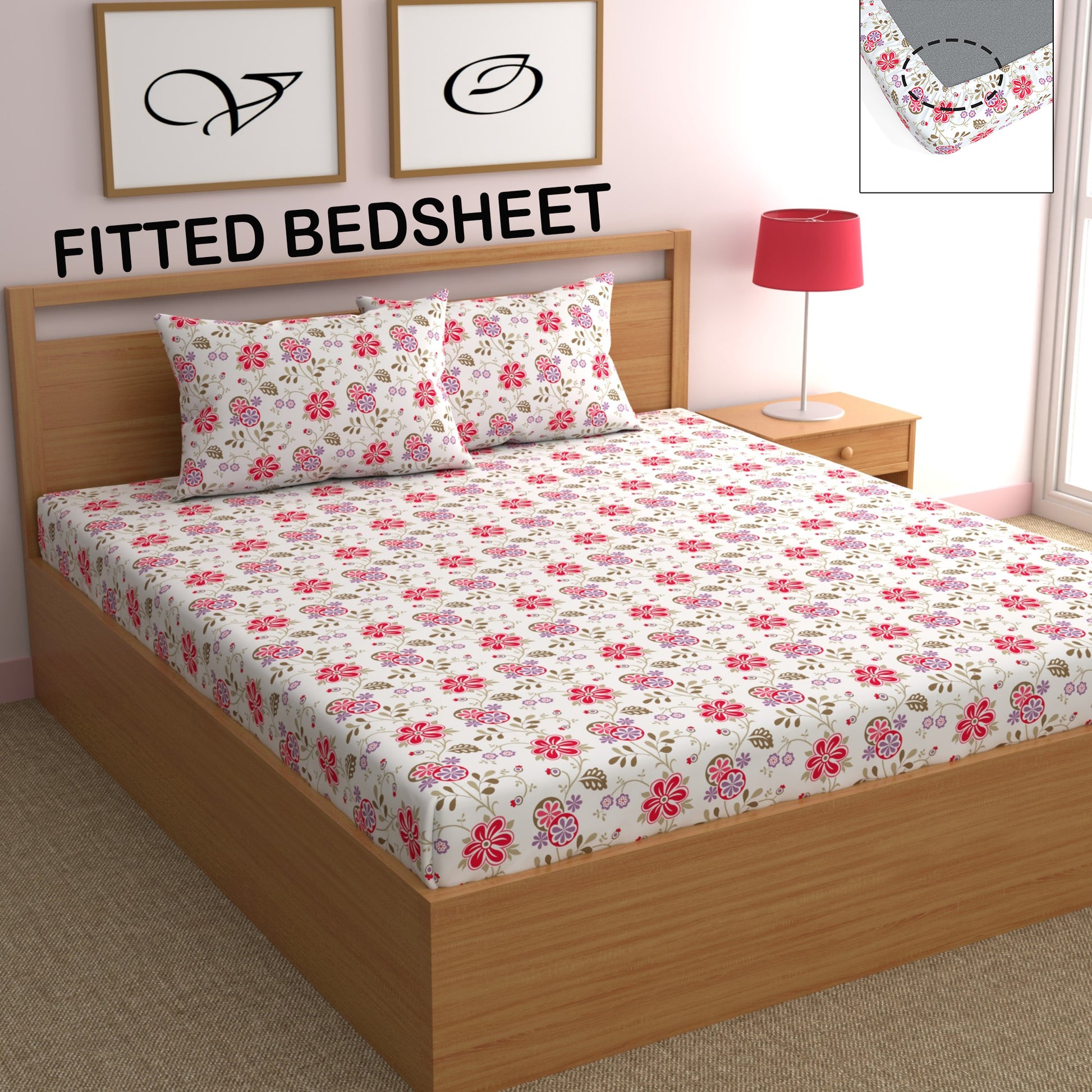 CHHAVI INDIA 210 TC Microfiber Fitted Double Size Printed Bedsheet