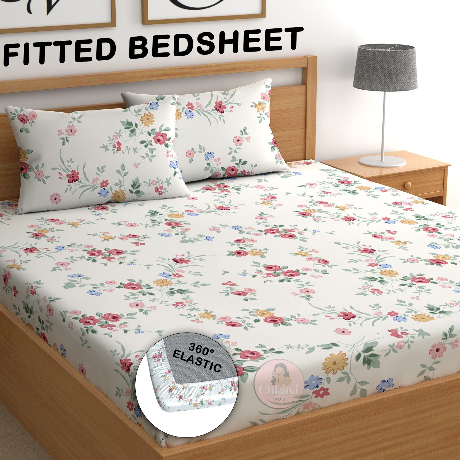 CHHAVI INDIA 210 TC Microfiber Fitted Double Size Printed Bedsheet With 2 Pillow covers