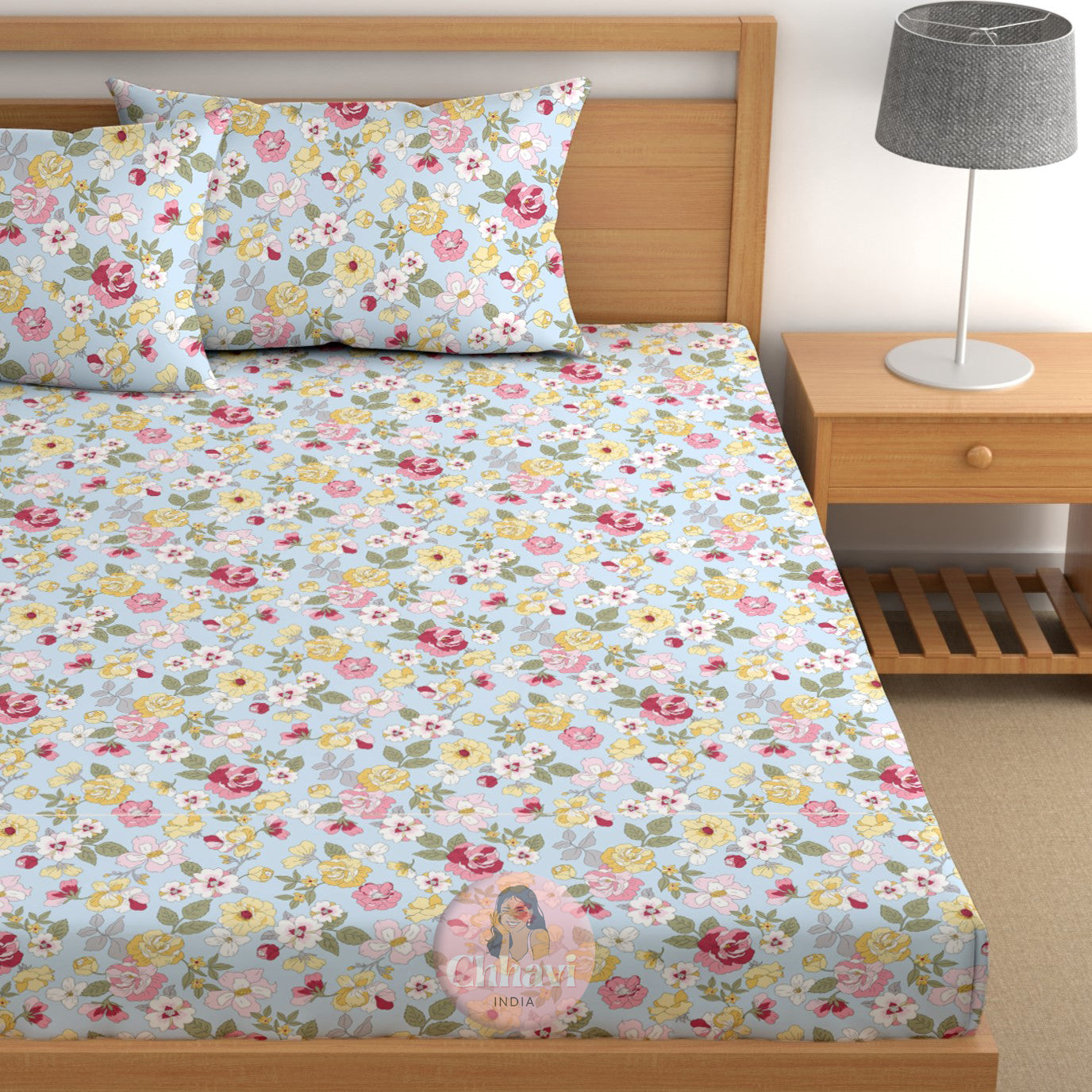 CHHAVI INDIA 210 TC Microfiber Printed Double Bedsheet With 2 Pillow Covers