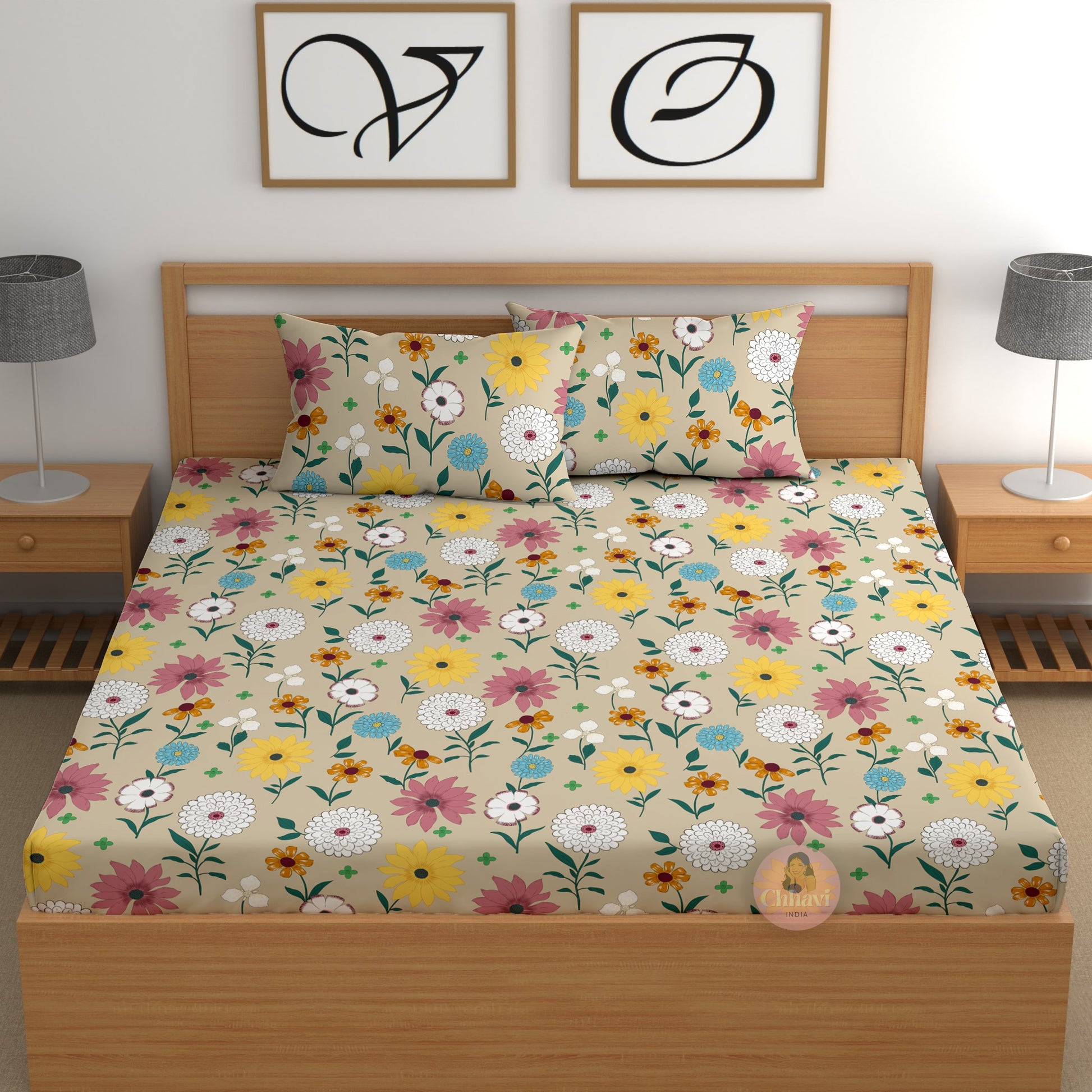 CHHAVI INDIA 210 TC Microfiber Printed Double Bedsheet With Pillow Covers