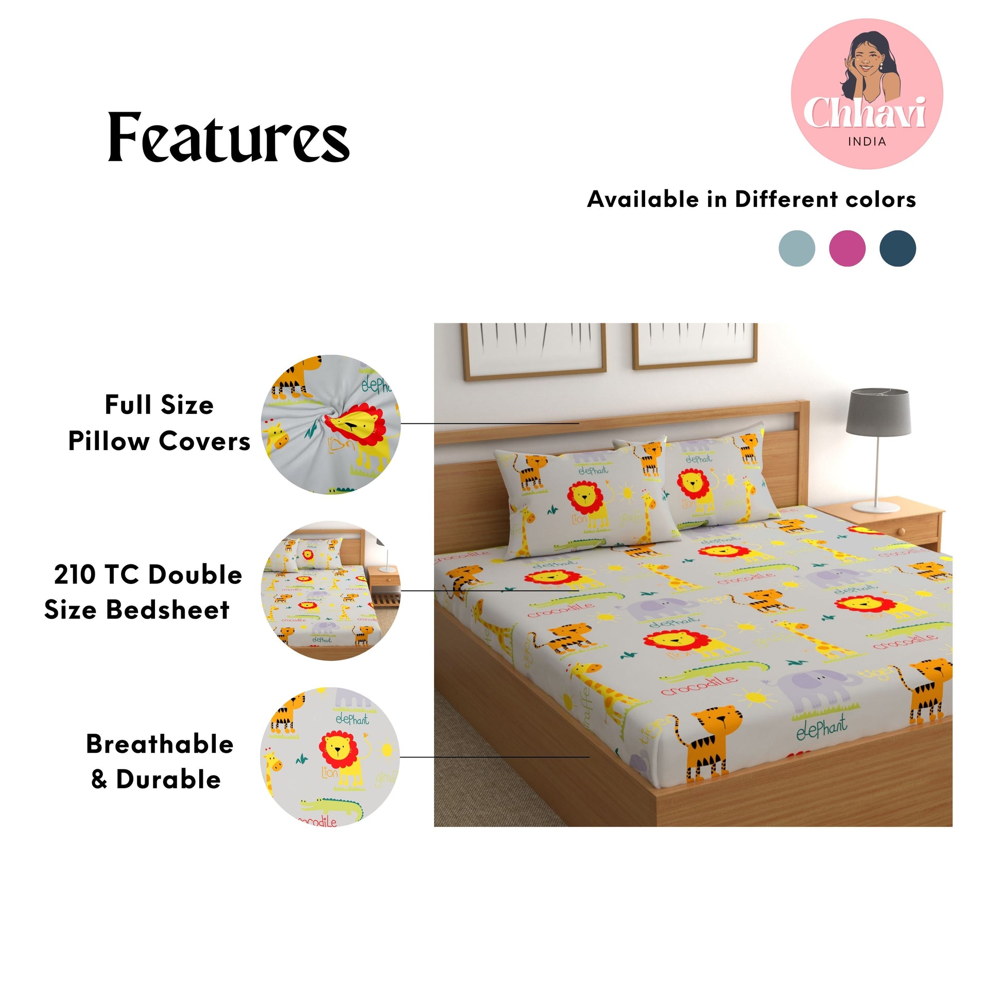 - Pack Contents – 1 Double Bedsheet with 2 pillow cover