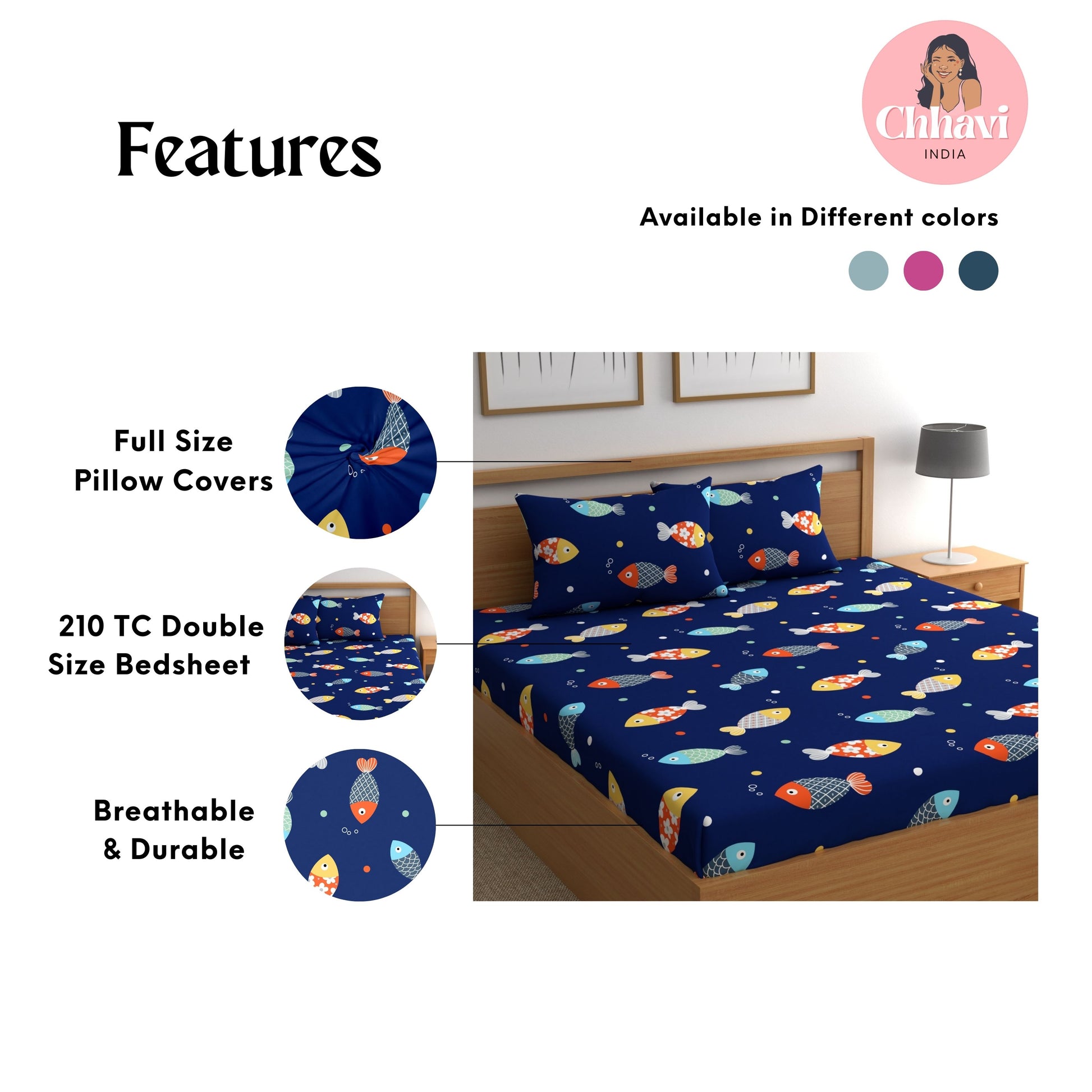 CHHAVI INDIA 210 TC Microfiber Printed Double Bedsheet With Pillow Covers