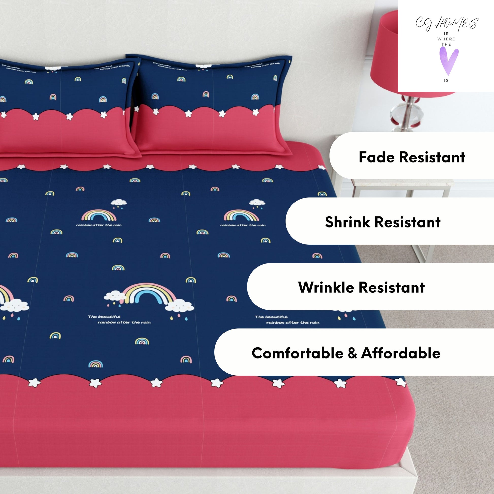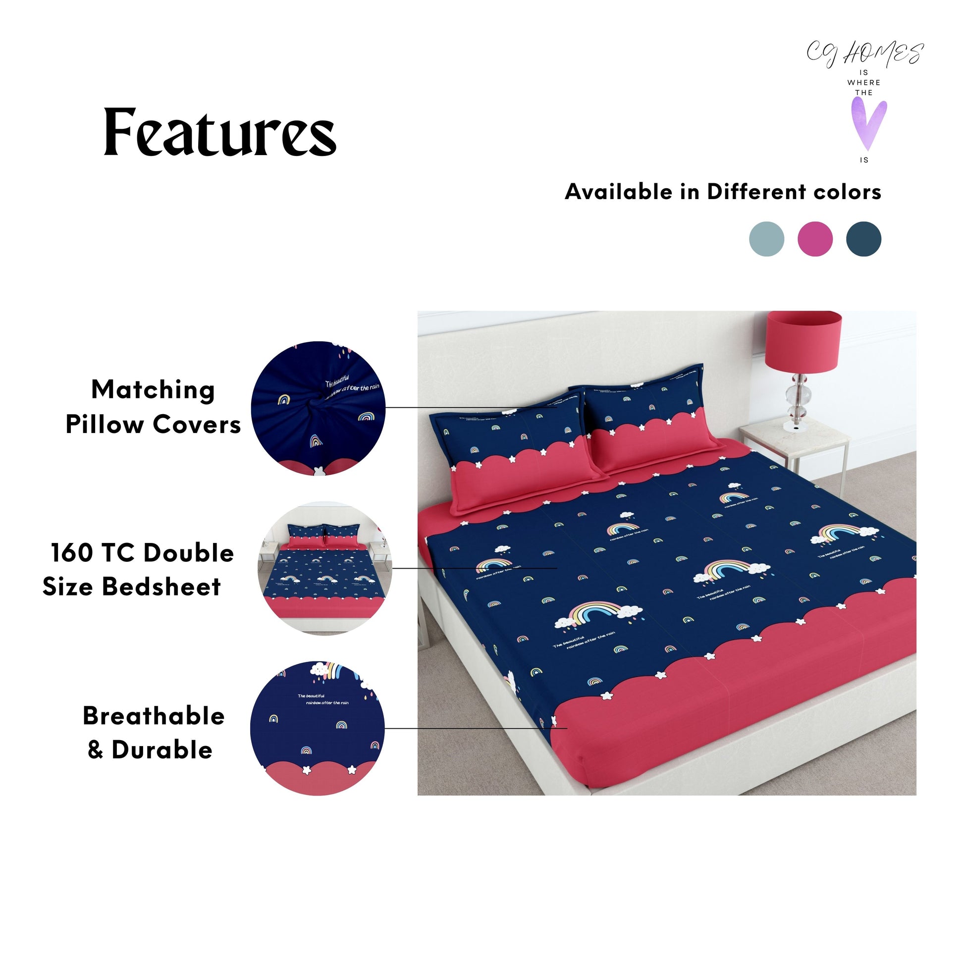 - Pack Contents – 1 Double Bedsheet with 2 pillow cover