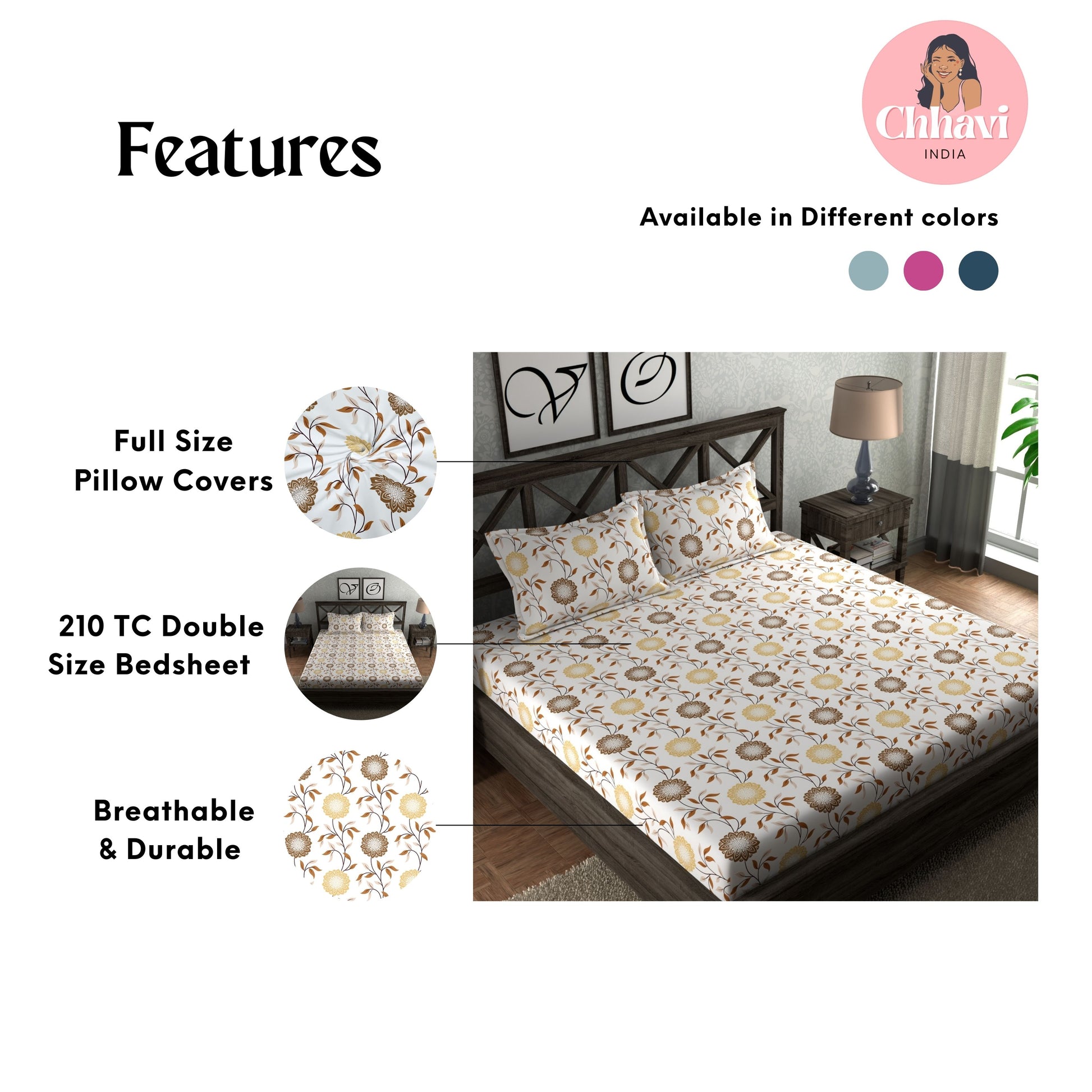 CHHAVI INDIA 210 TC Microfiber Printed Double Bedsheet With Pillow Covers