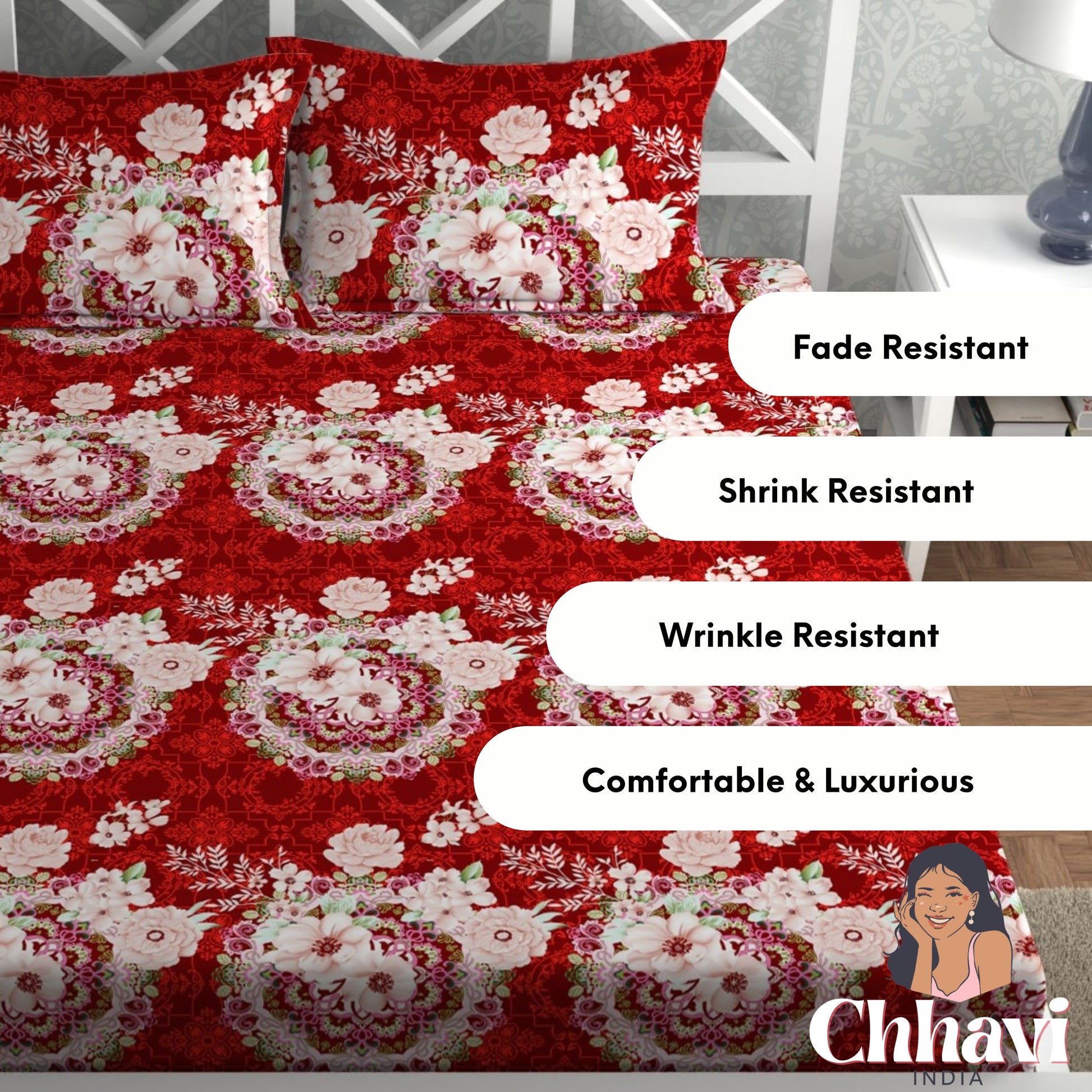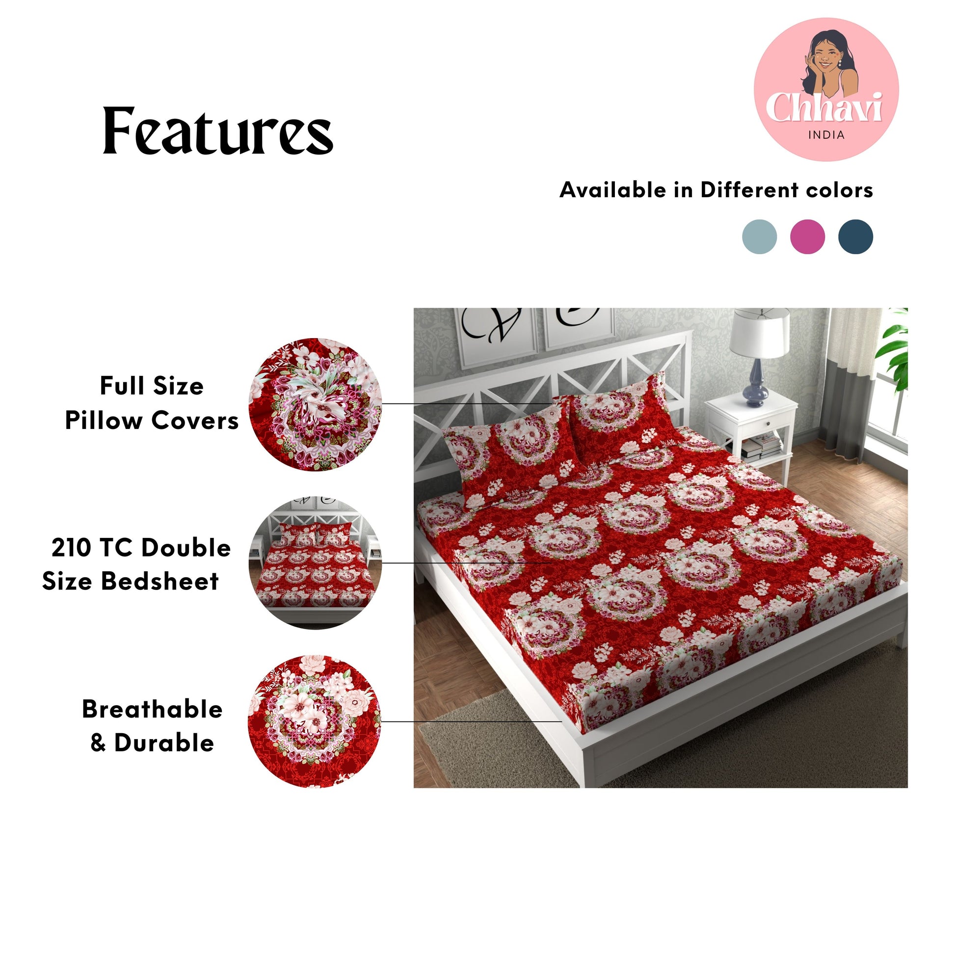 CHHAVI INDIA 210 TC Microfiber Printed Double Bedsheet With Pillow Covers