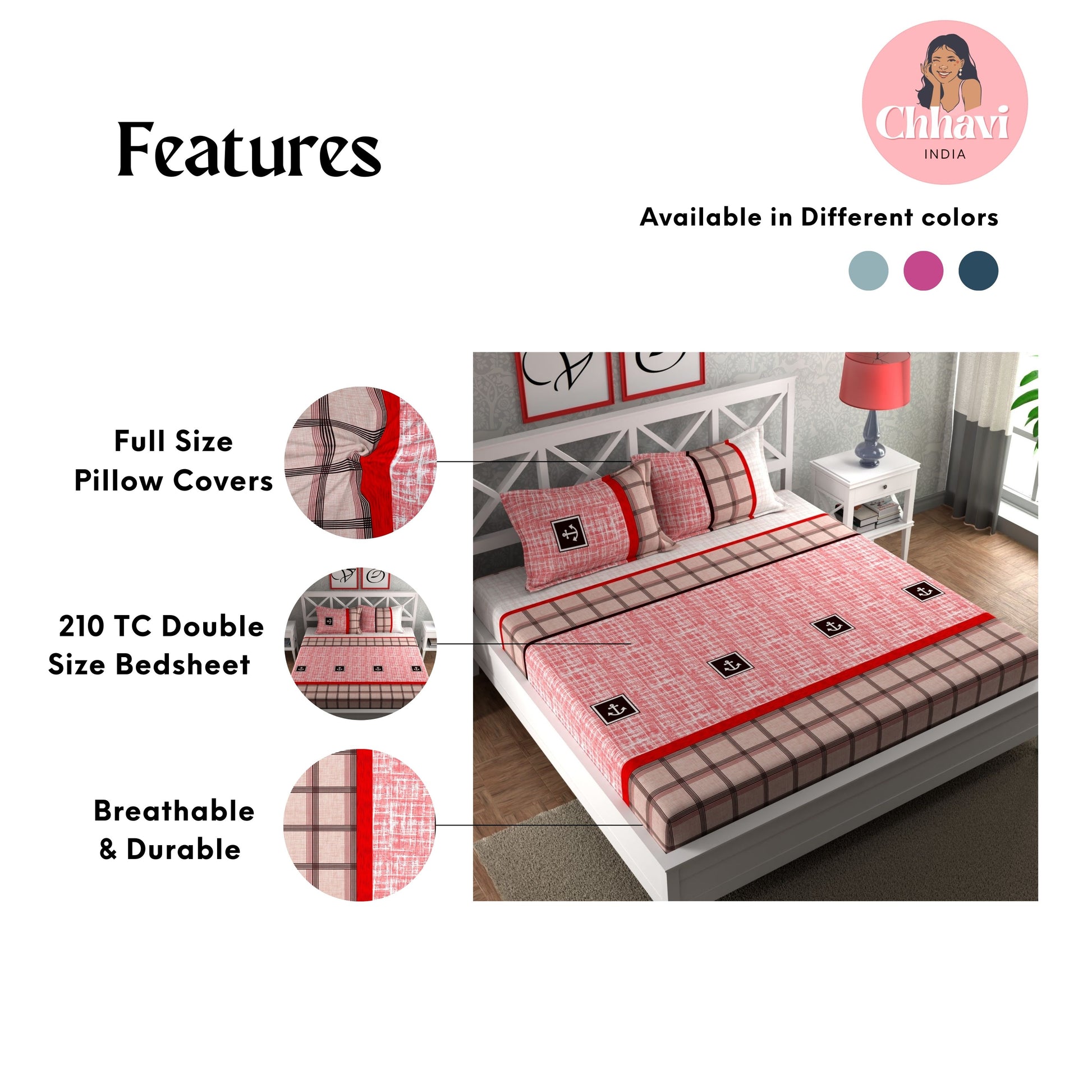 - Pack Contents – 1 Double Bedsheet with 2 pillow cover