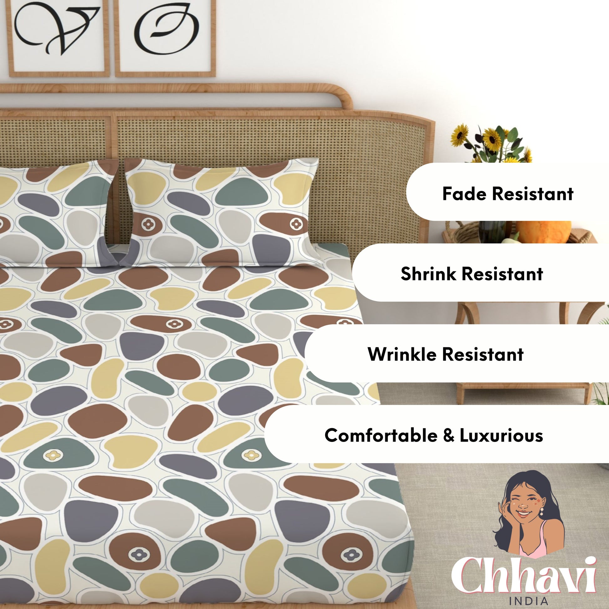 CHHAVI INDIA 210 TC Microfiber Printed Double Bedsheet With Pillow Covers
