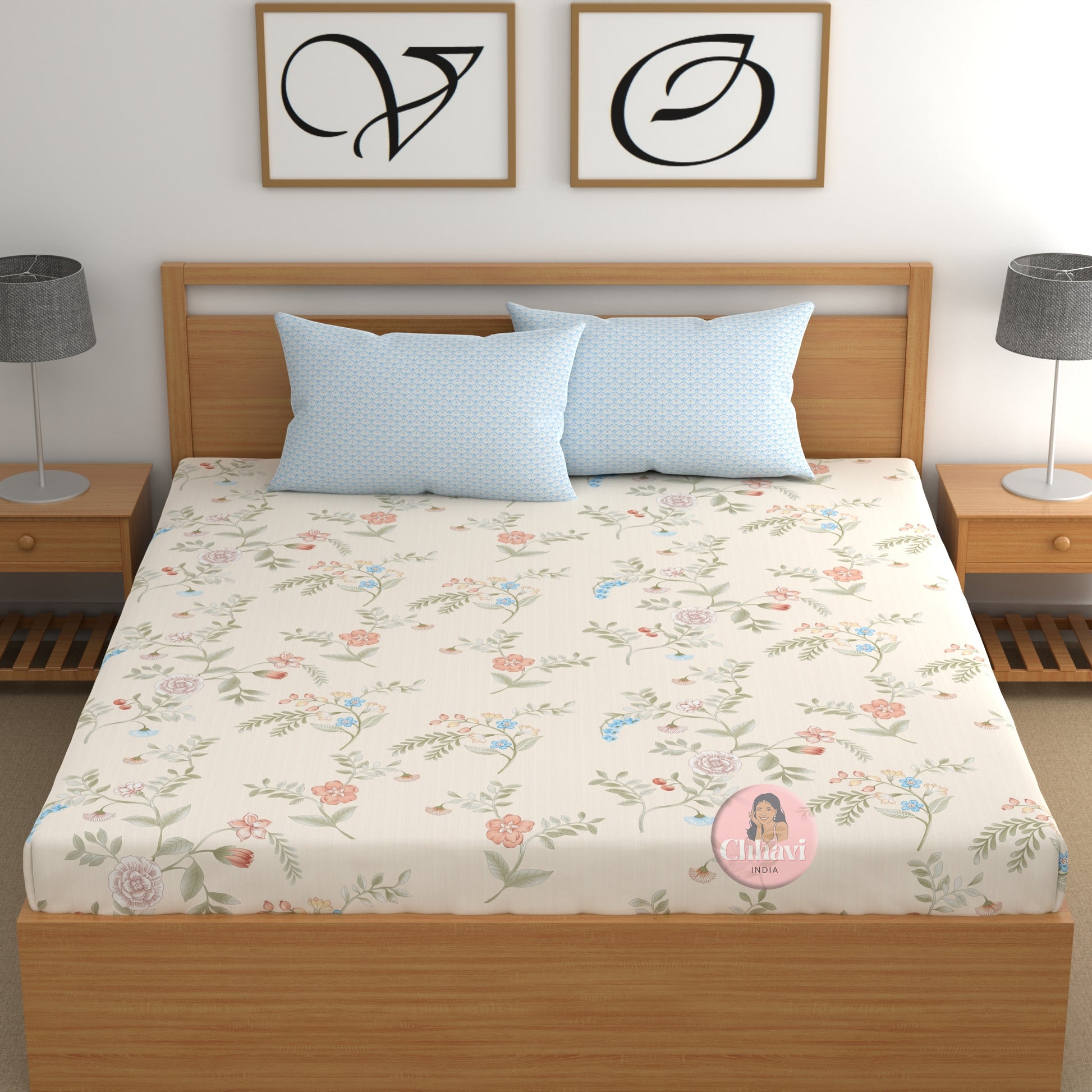 CHHAVI INDIA 210 TC Microfiber Printed Double Bedsheet With Pillow Covers