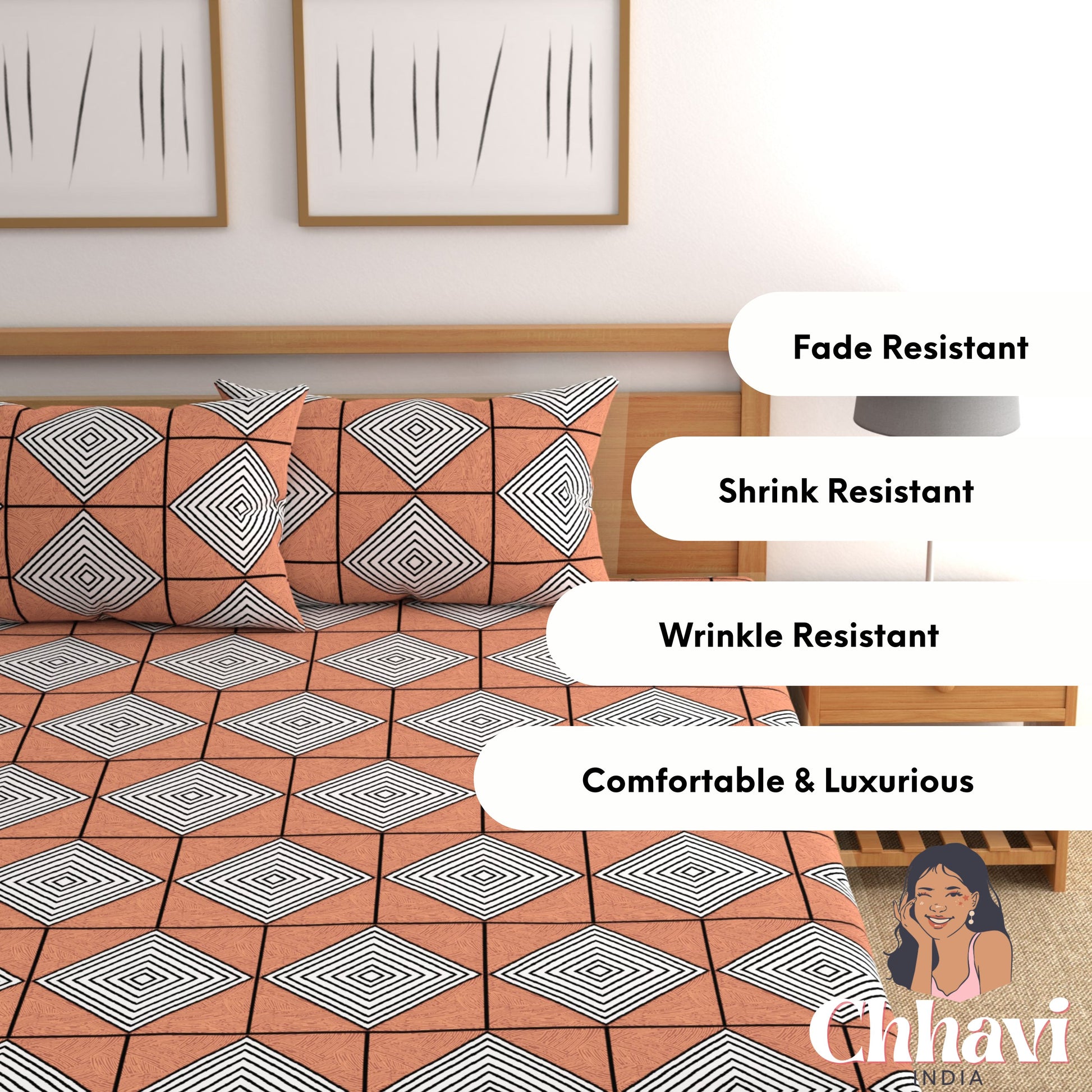- Pack Contents – 1 Double Bedsheet with 2 pillow cover