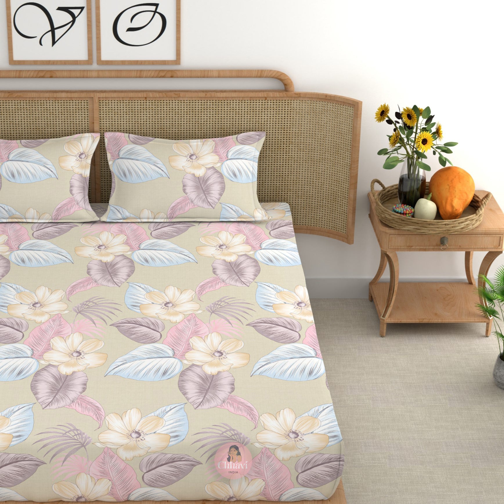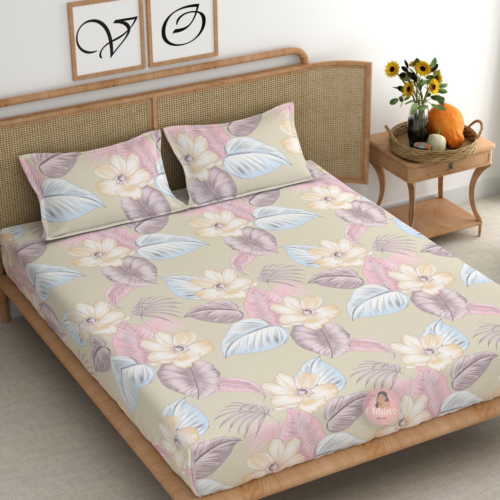 CHHAVI INDIA 210 TC Microfiber Printed Double Bedsheet With Pillow Covers