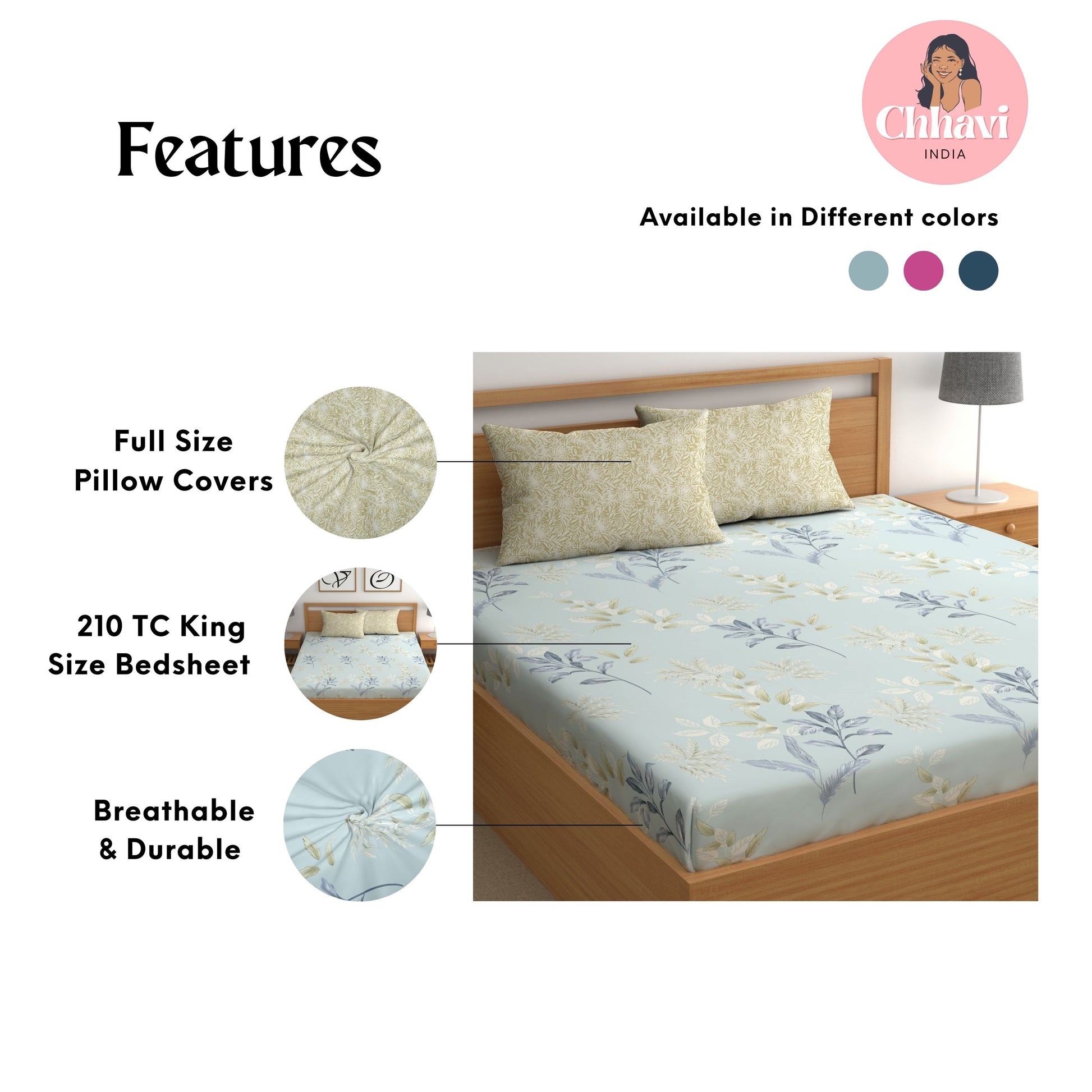 CHHAVI INDIA 210 TC Microfiber Printed King Size Bedsheet With Pillow Covers