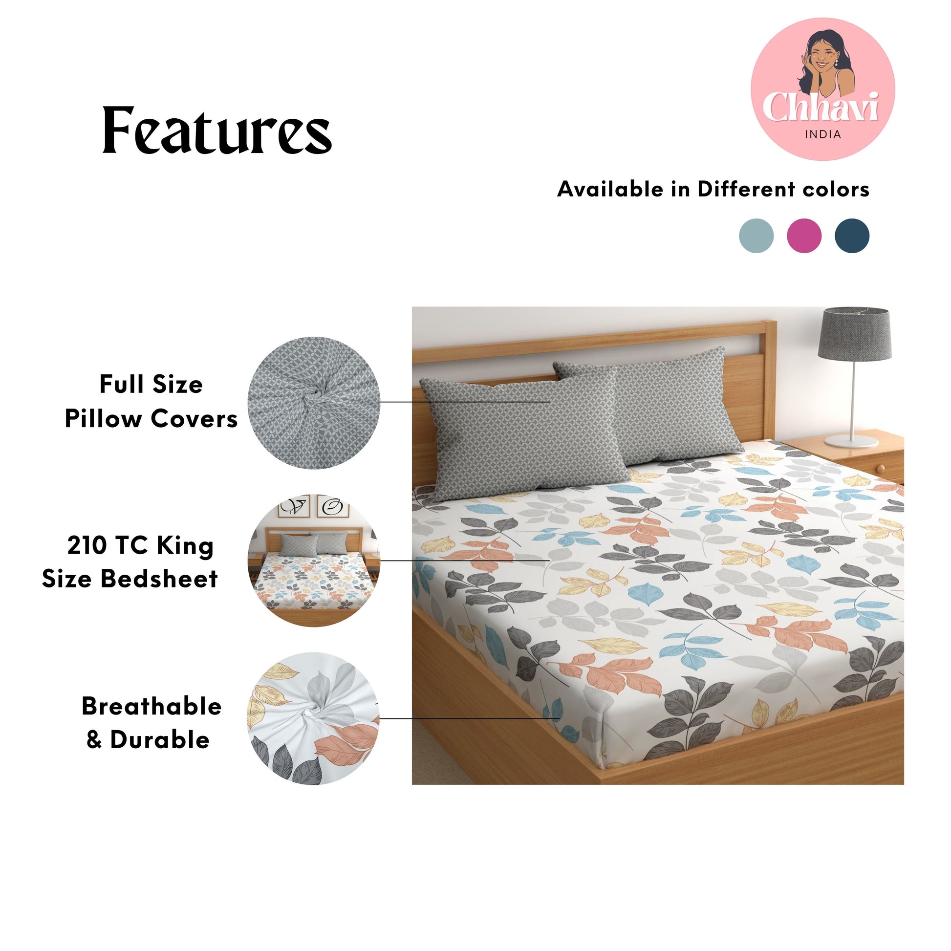 CHHAVI INDIA 210 TC Microfiber Printed King Size Bedsheet With Pillow Covers