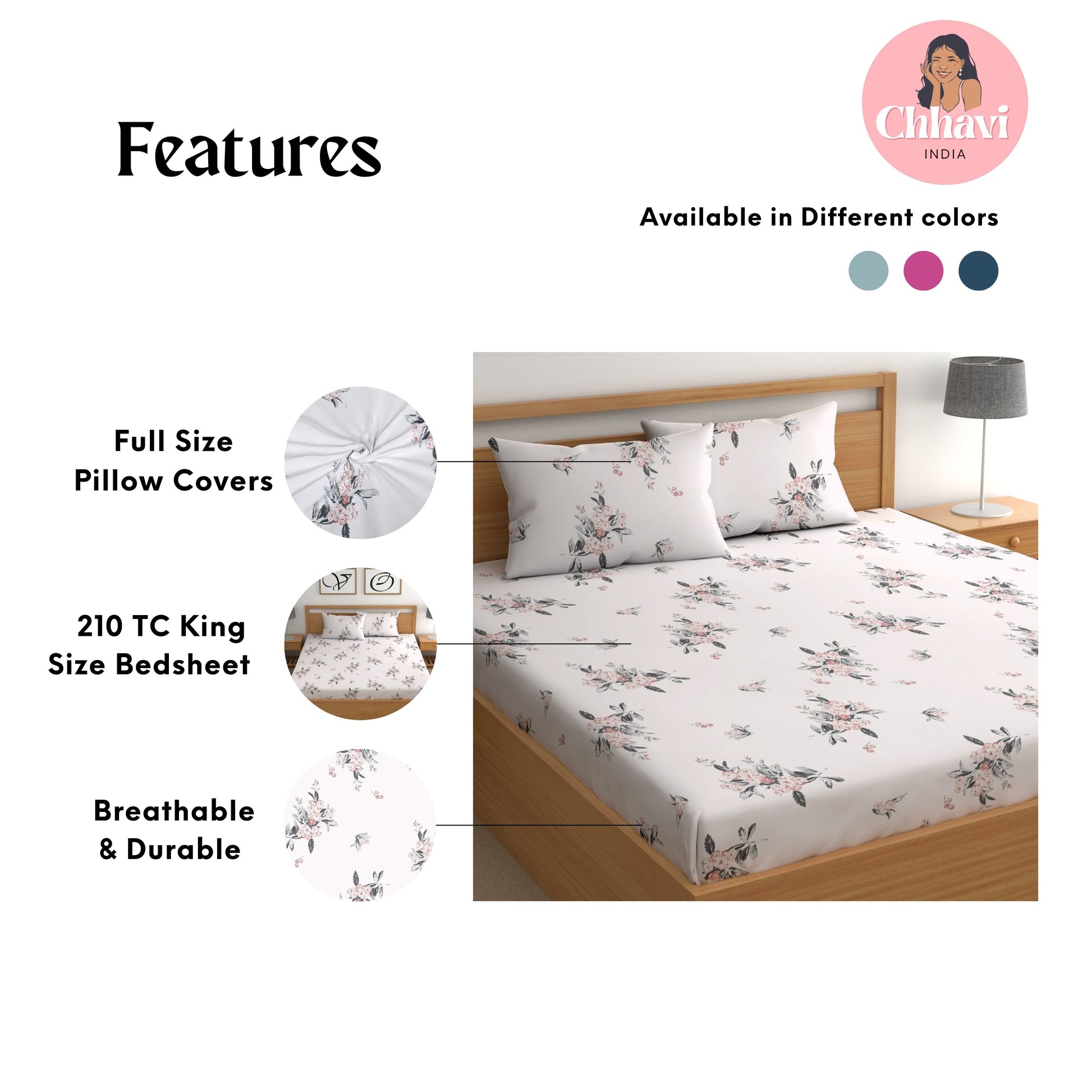 CHHAVI INDIA 210 TC Microfiber Printed King Size Bedsheet With Pillow Covers
