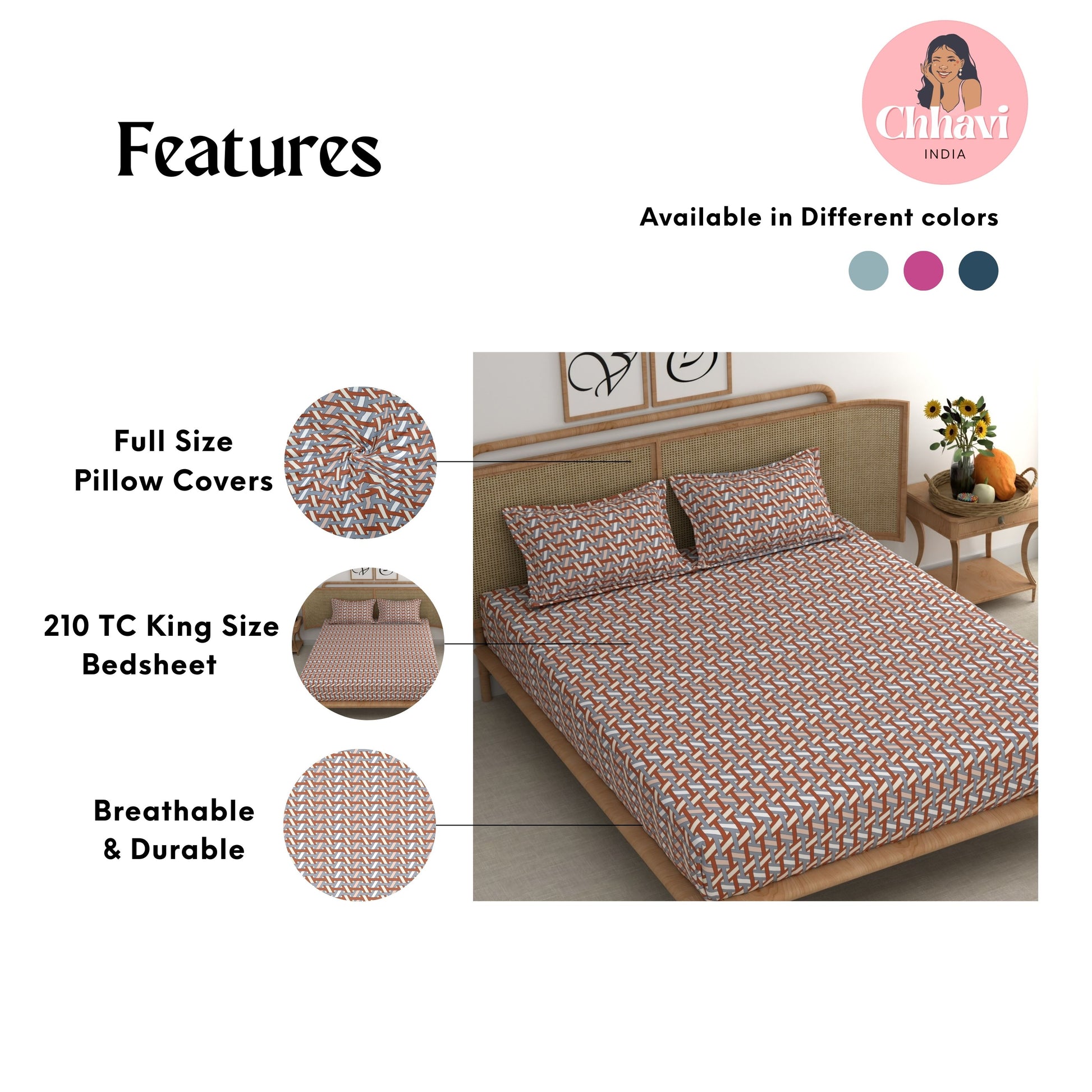 CHHAVI INDIA 210 TC Microfiber Printed King Size Bedsheet With Pillow Covers