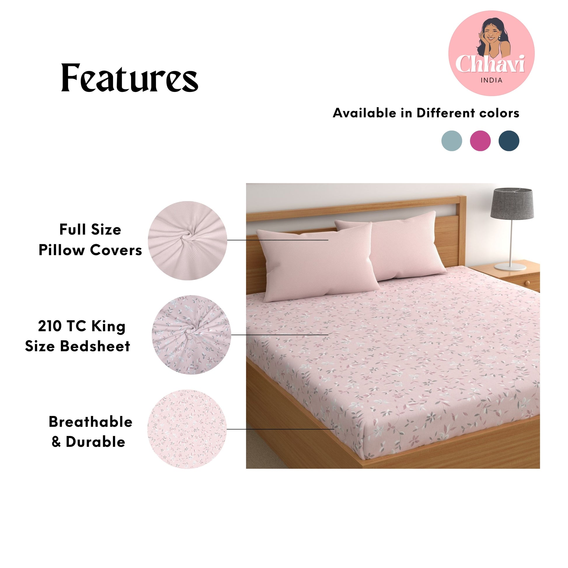 CHHAVI INDIA 210 TC Microfiber Printed King Size Bedsheet With Pillow Covers