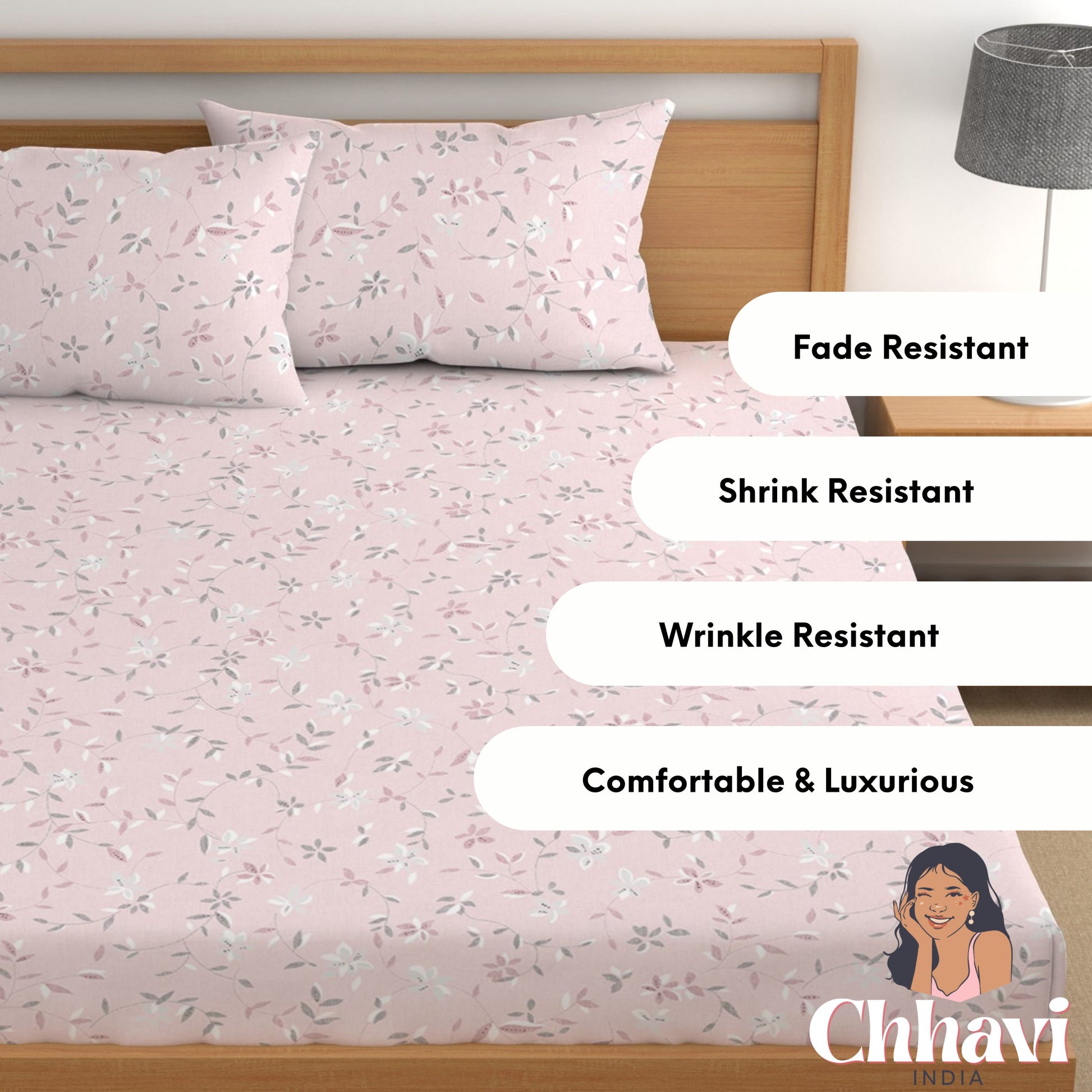 CHHAVI INDIA 210 TC Microfiber Printed King Size Bedsheet With Pillow Covers