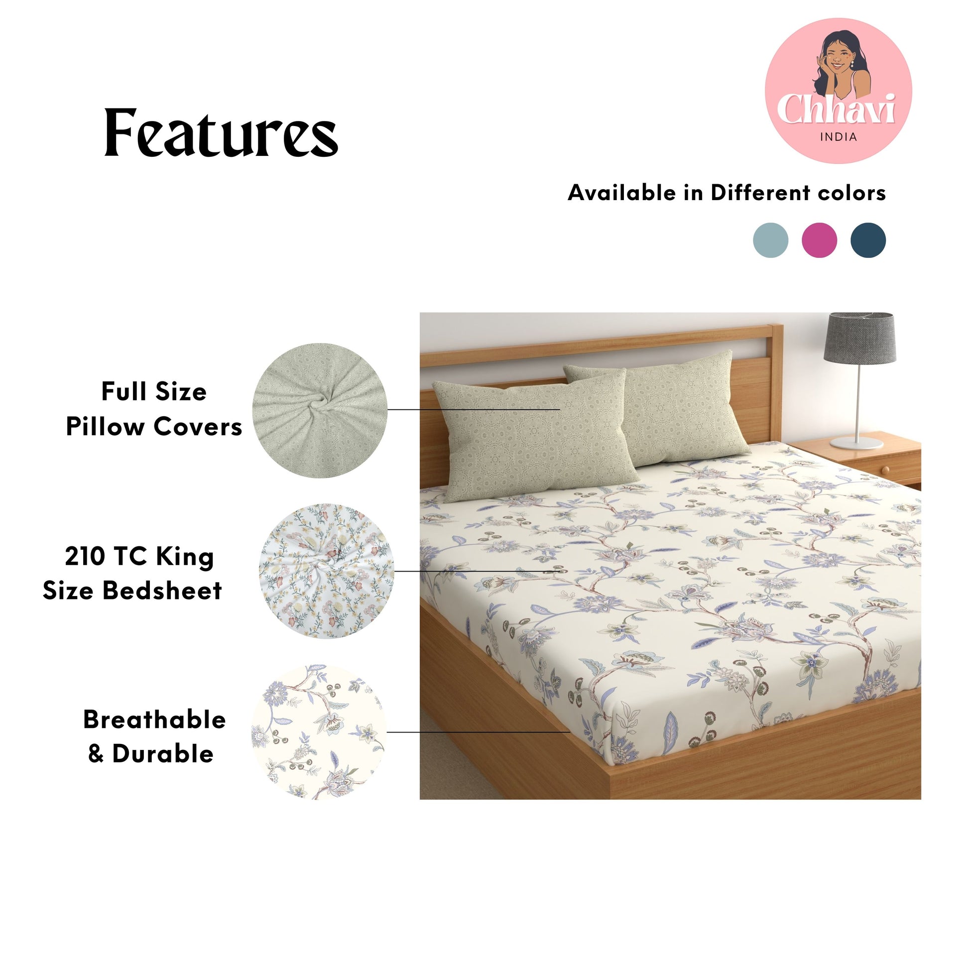 CHHAVI INDIA 210 TC Microfiber Printed King Size Bedsheet With Pillow Covers