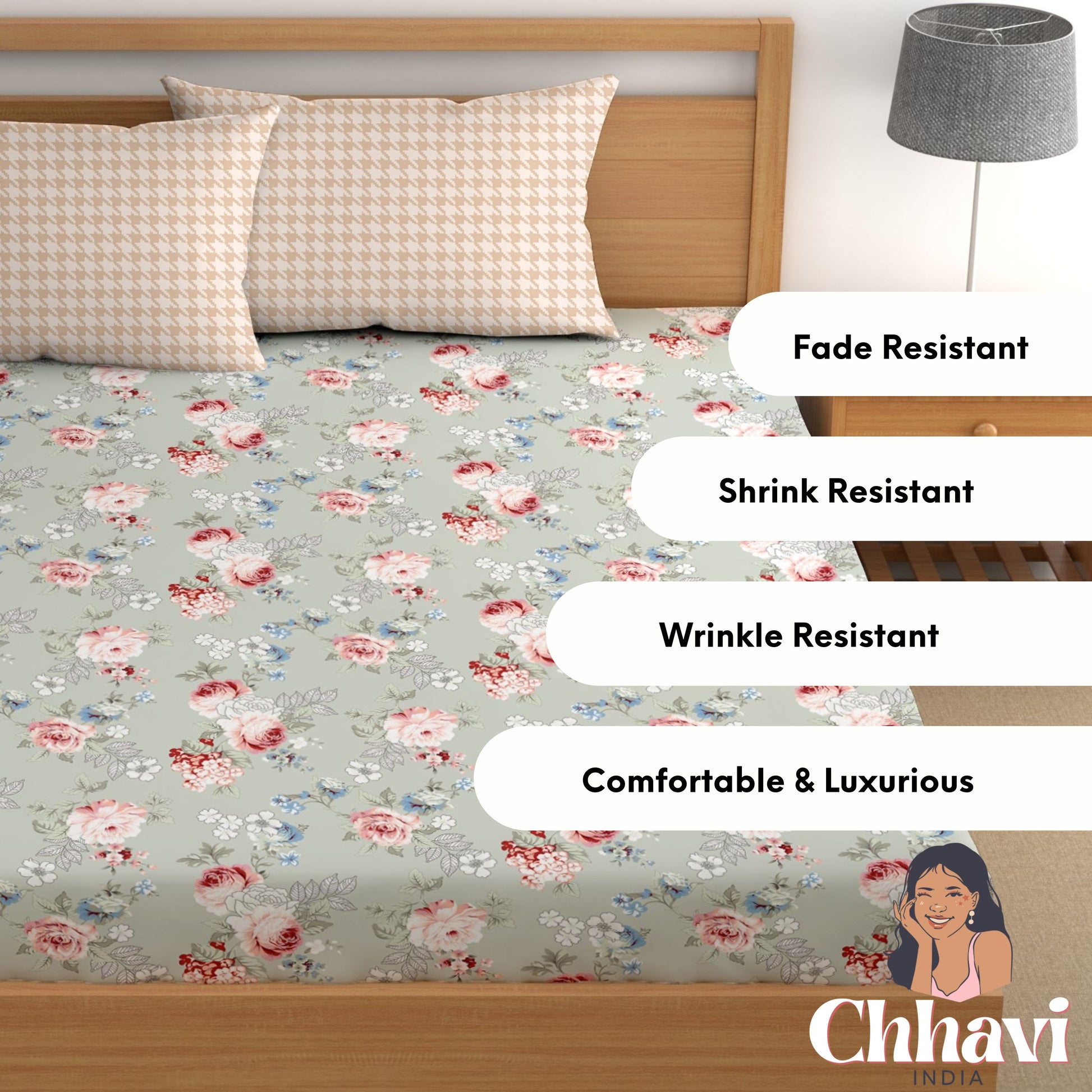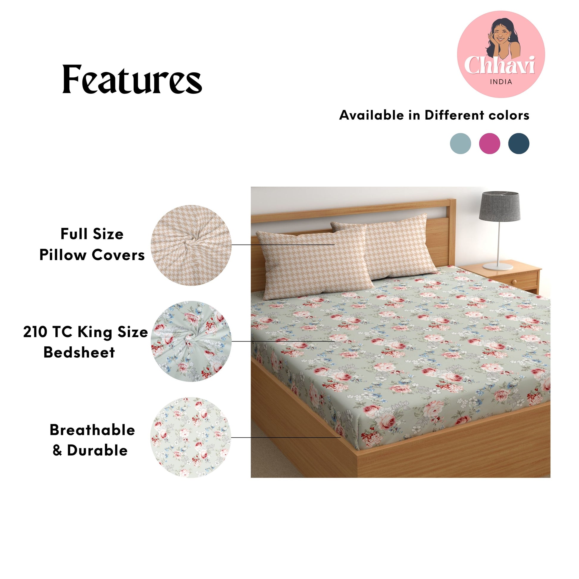 CHHAVI INDIA 210 TC Microfiber Printed King Size Bedsheet With Pillow Covers