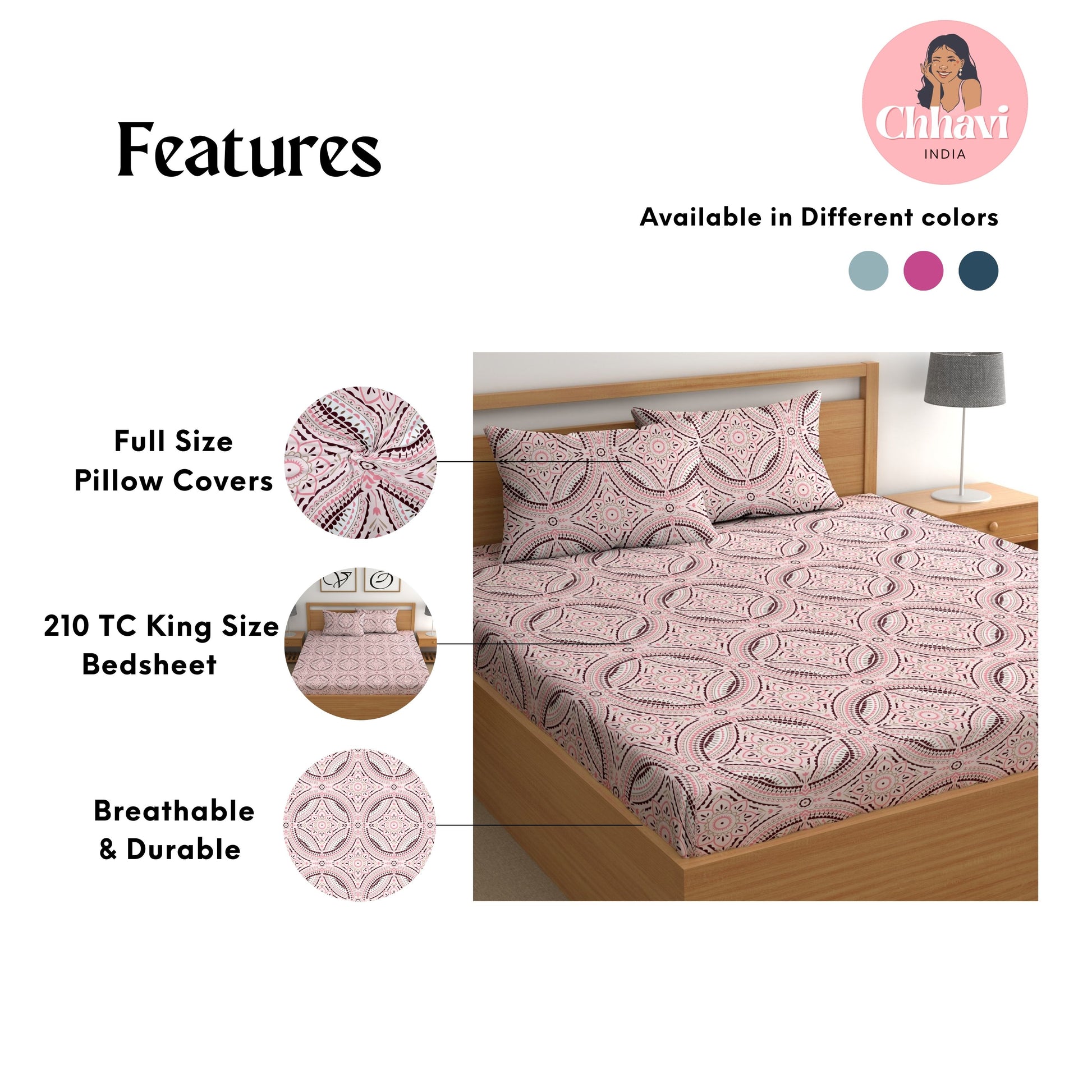 CHHAVI INDIA 210 TC Microfiber Printed King Size Bedsheet With Pillow Covers