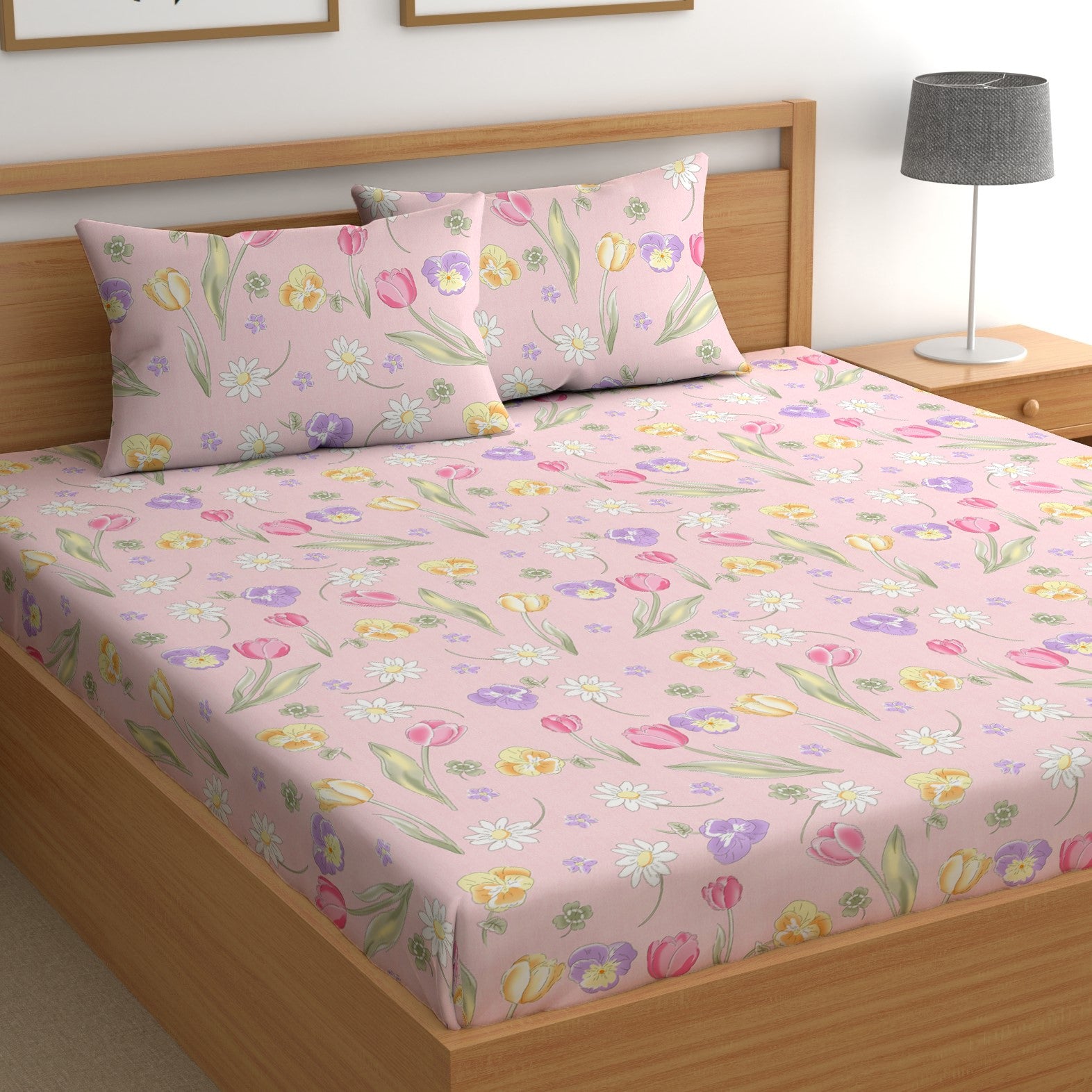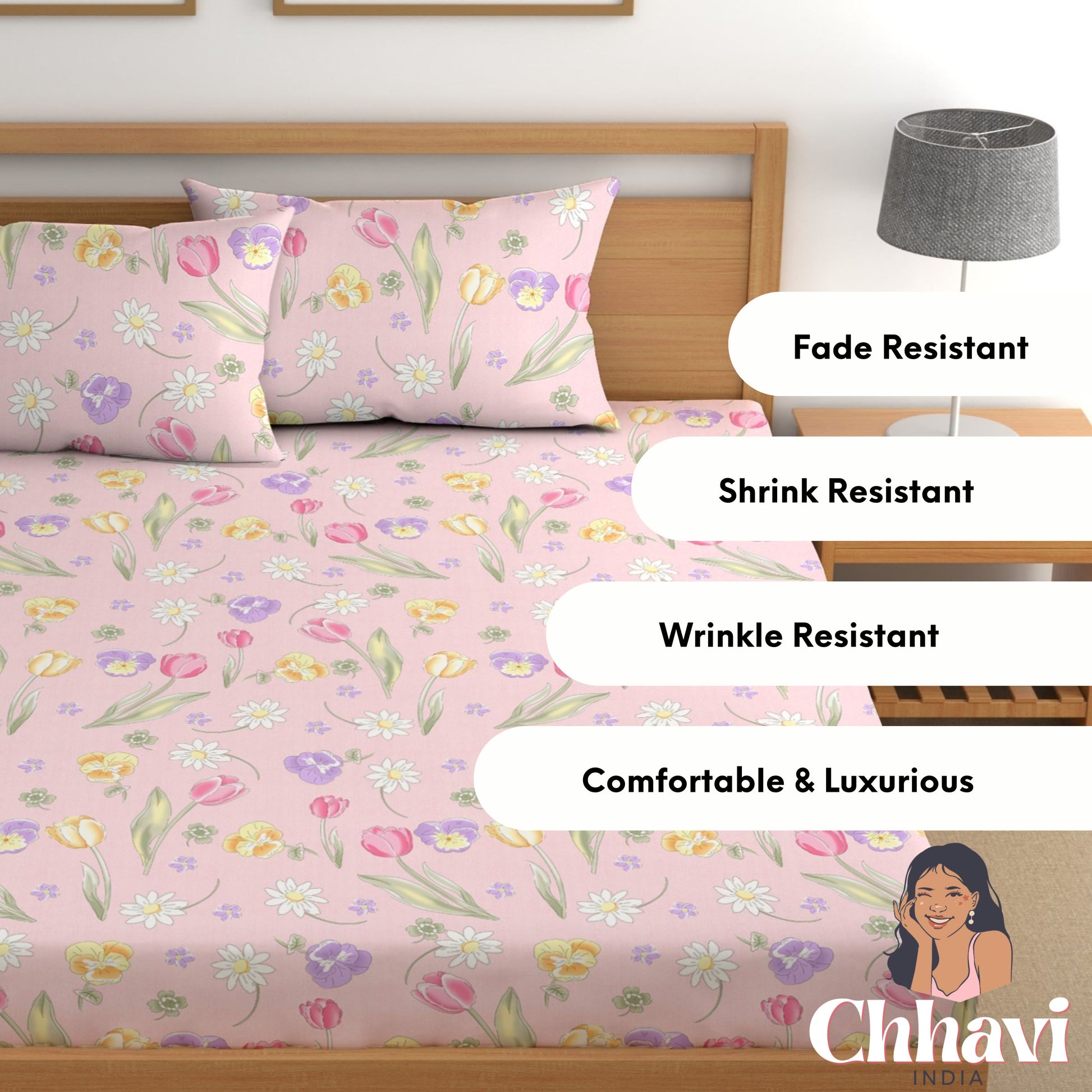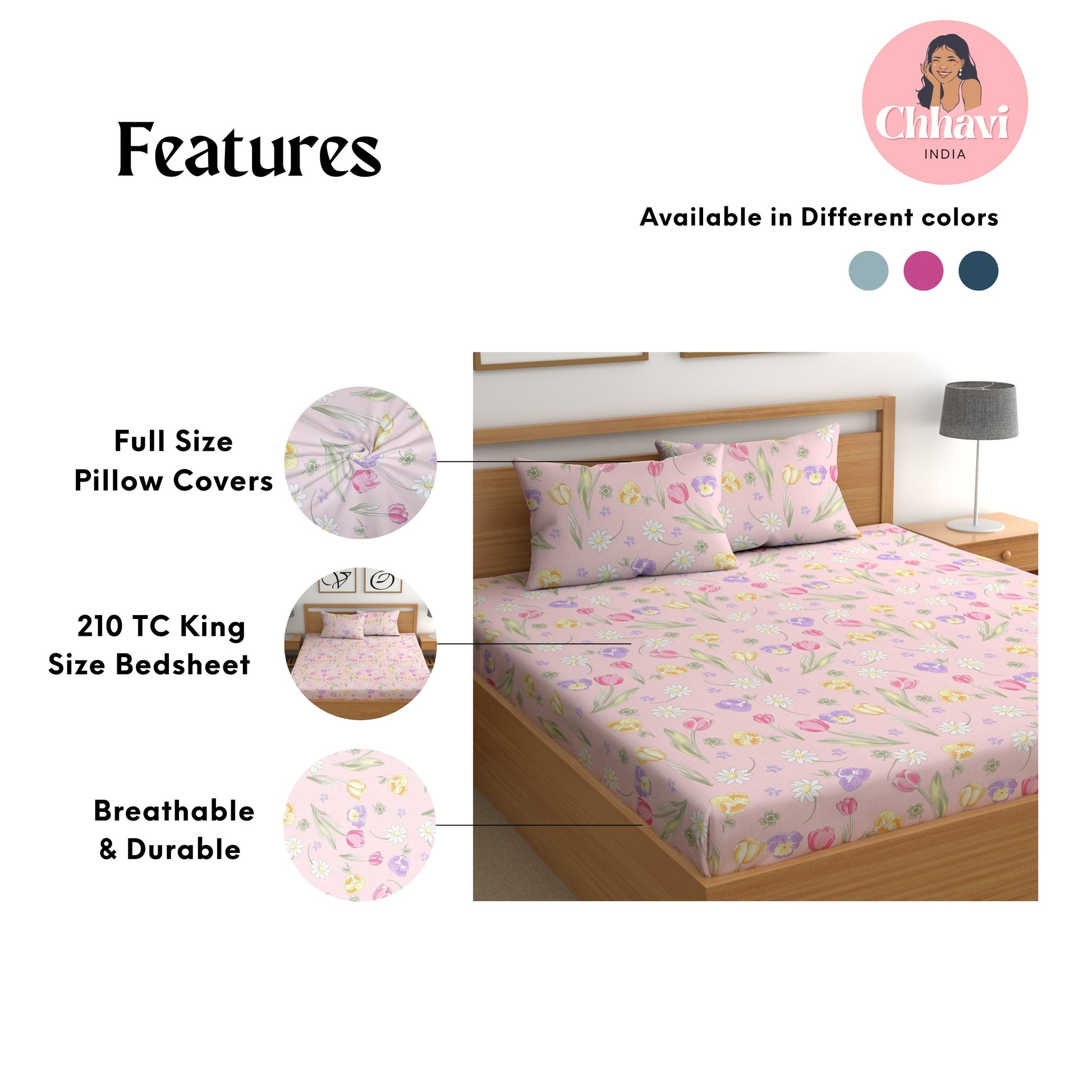 CHHAVI INDIA 210 TC Microfiber Printed King Size Bedsheet With Pillow Covers