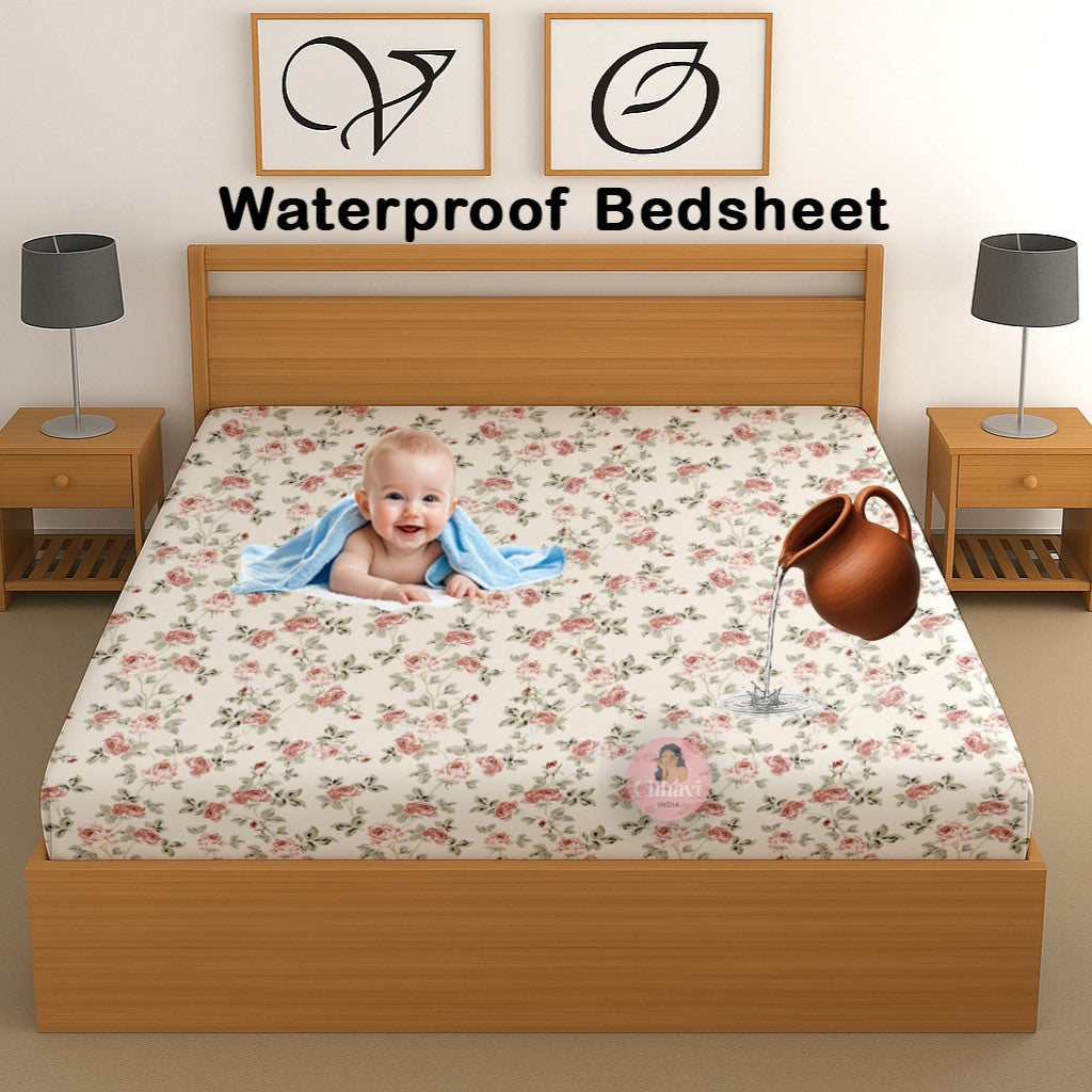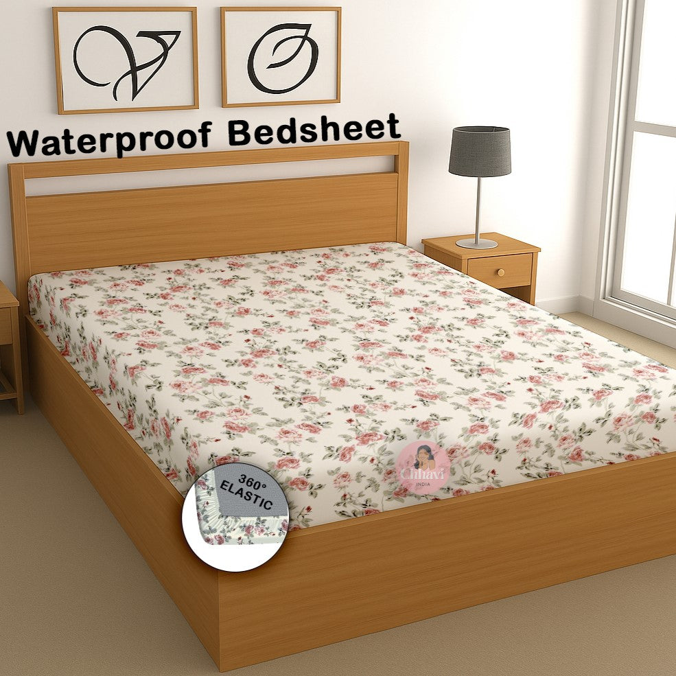 CHHAVI INDIA 210 TC Microfiber Waterproof Printed Fitted (Elastic) Bedsheet