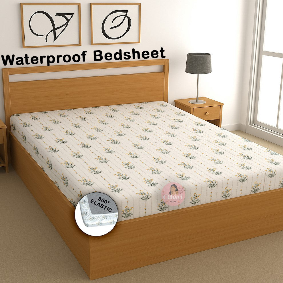 CHHAVI INDIA 210 TC Microfiber Waterproof Printed Fitted (Elastic) Bedsheet