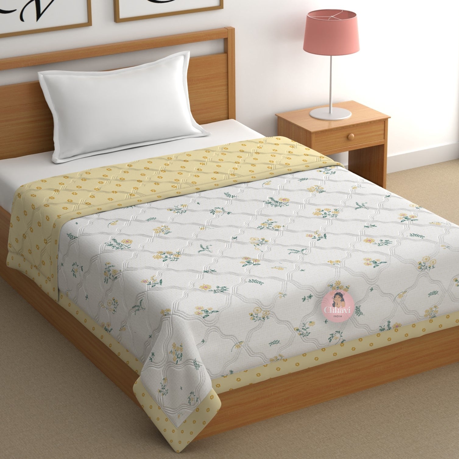 Give your bedroom a stylish makeover with this beautiful Single bed comforter from CHHAVI INDIA Inspired by nature, the comforter is 100% premium quality microfiber that is soft to touch and comfortable on the skin. It delivers maximum relaxation and comfort while sleeping. Suitable for all seasons and a perfect addition to your bedroom linen!