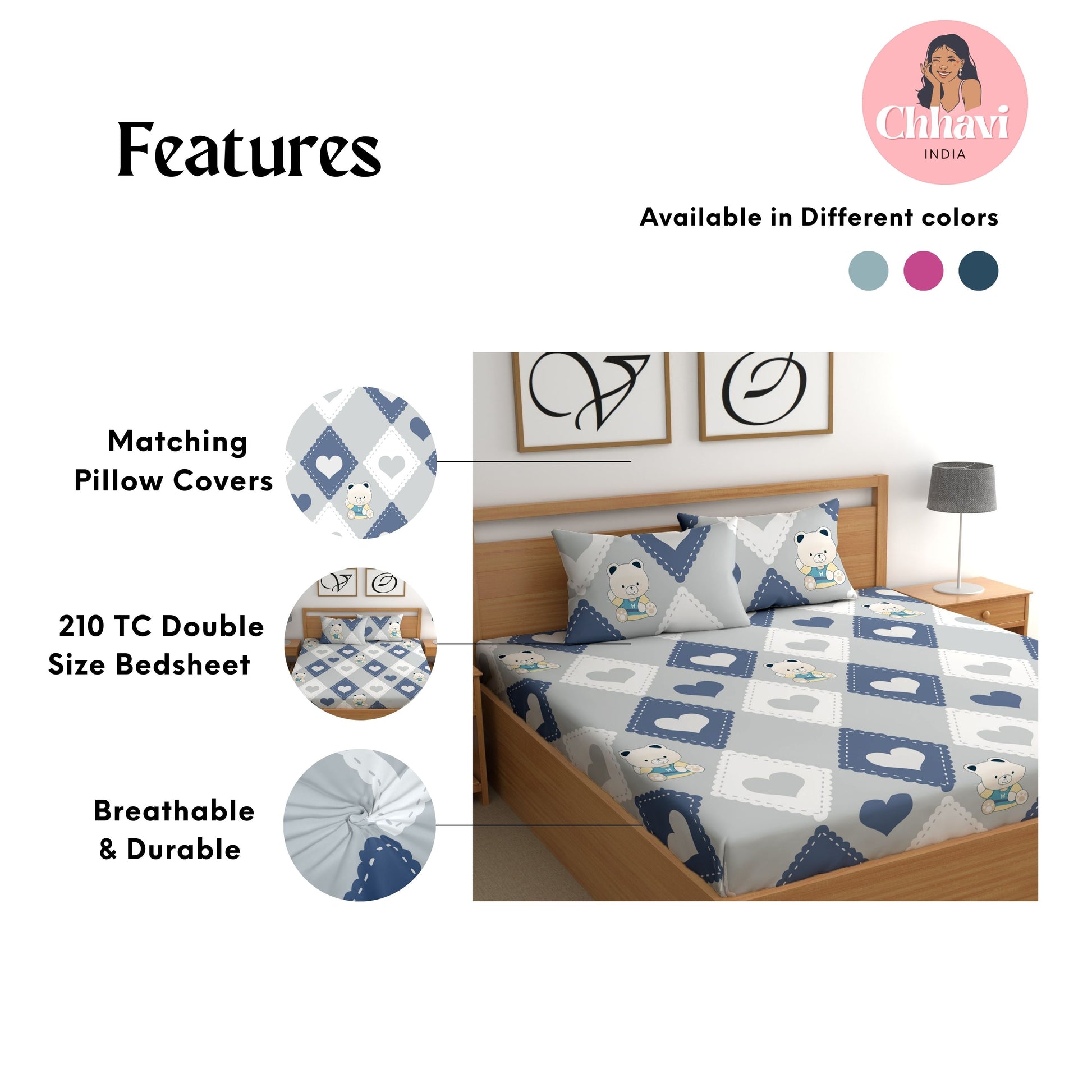 - Pack Contents – 1 Double Bedsheet with 2 pillow cover