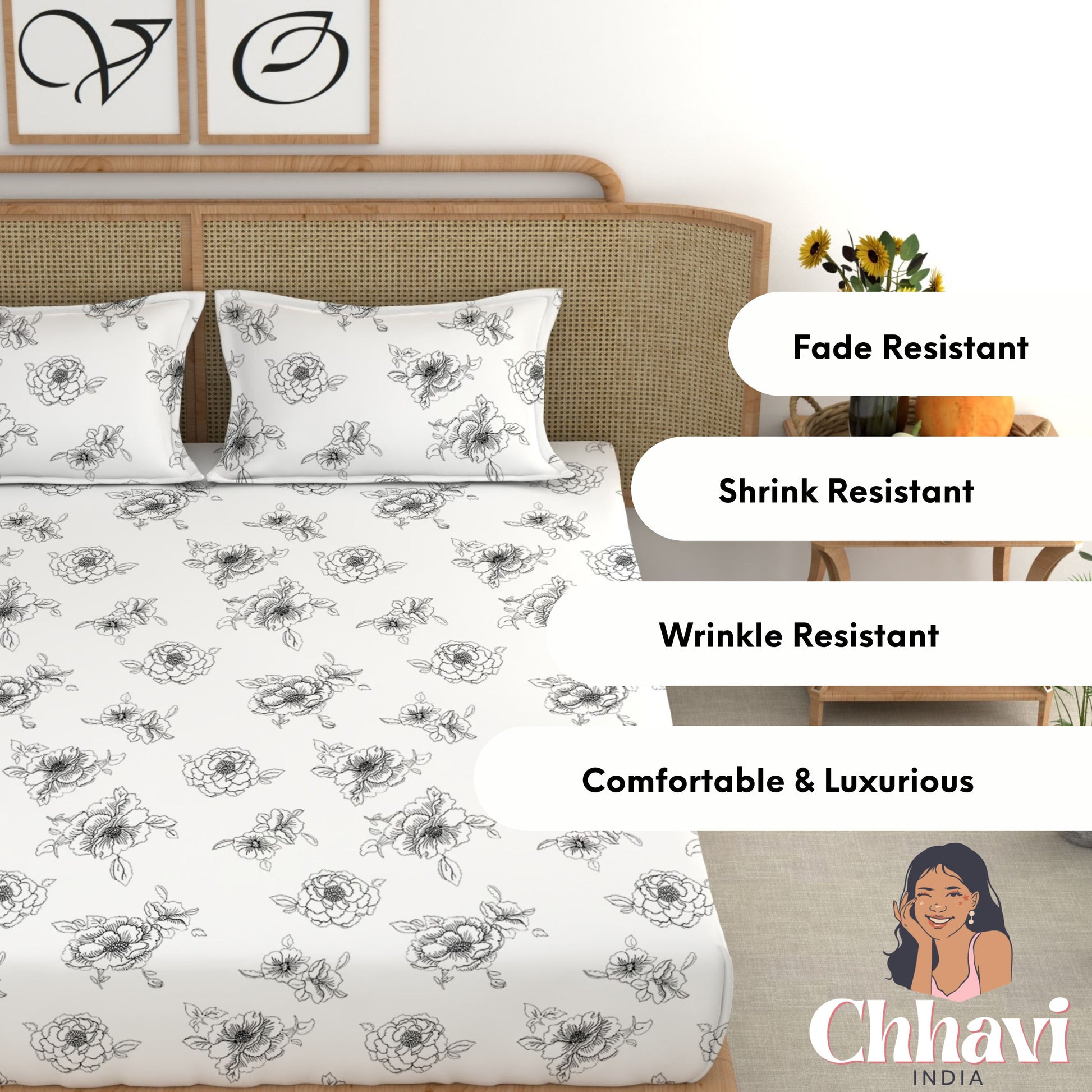 Give your bedroom a stylish makeover with this beautiful King size bedsheet from CHHAVI INDIA Inspired by nature, the bedsheet is 100% premium quality microfiber that is soft to touch and comfortable on the skin. It delivers maximum relaxation and comfort while sleeping. Suitable for all seasons and a perfect addition to your bedroom linen!