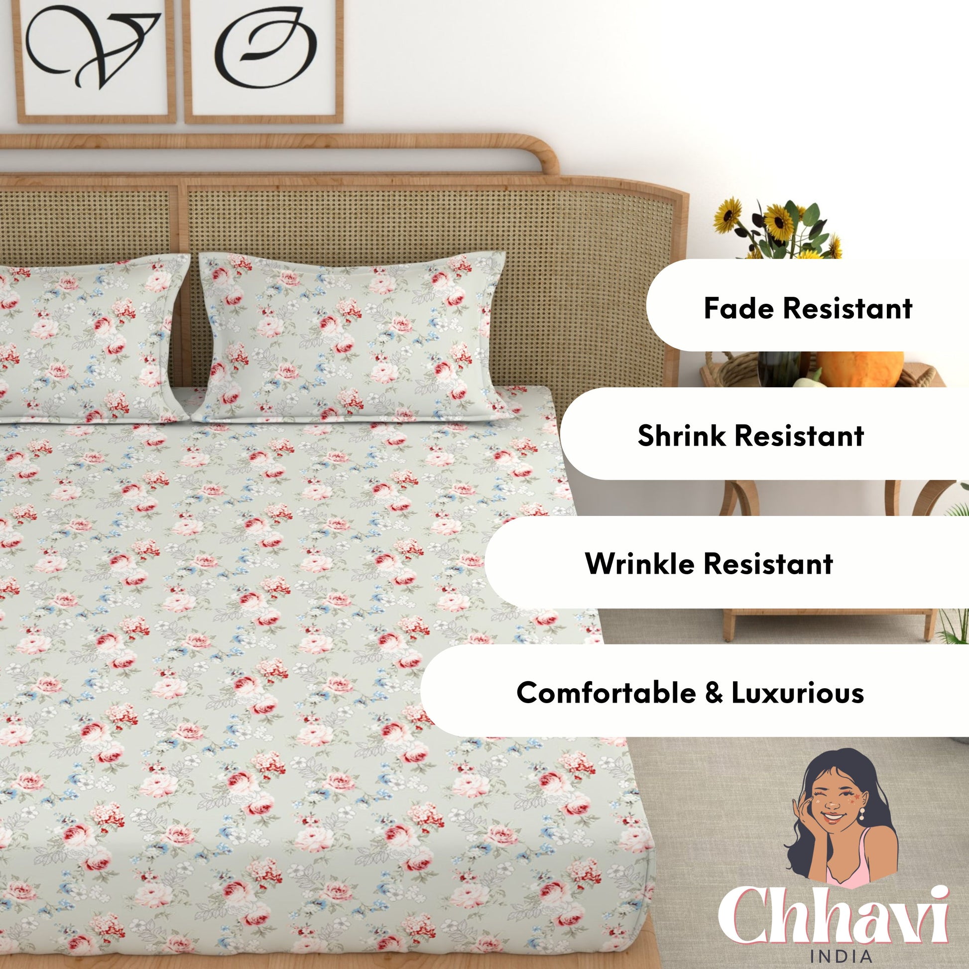 CHHAVI INDIA 210 TC Microfiber Printed King Size Bedsheet With Pillow Covers