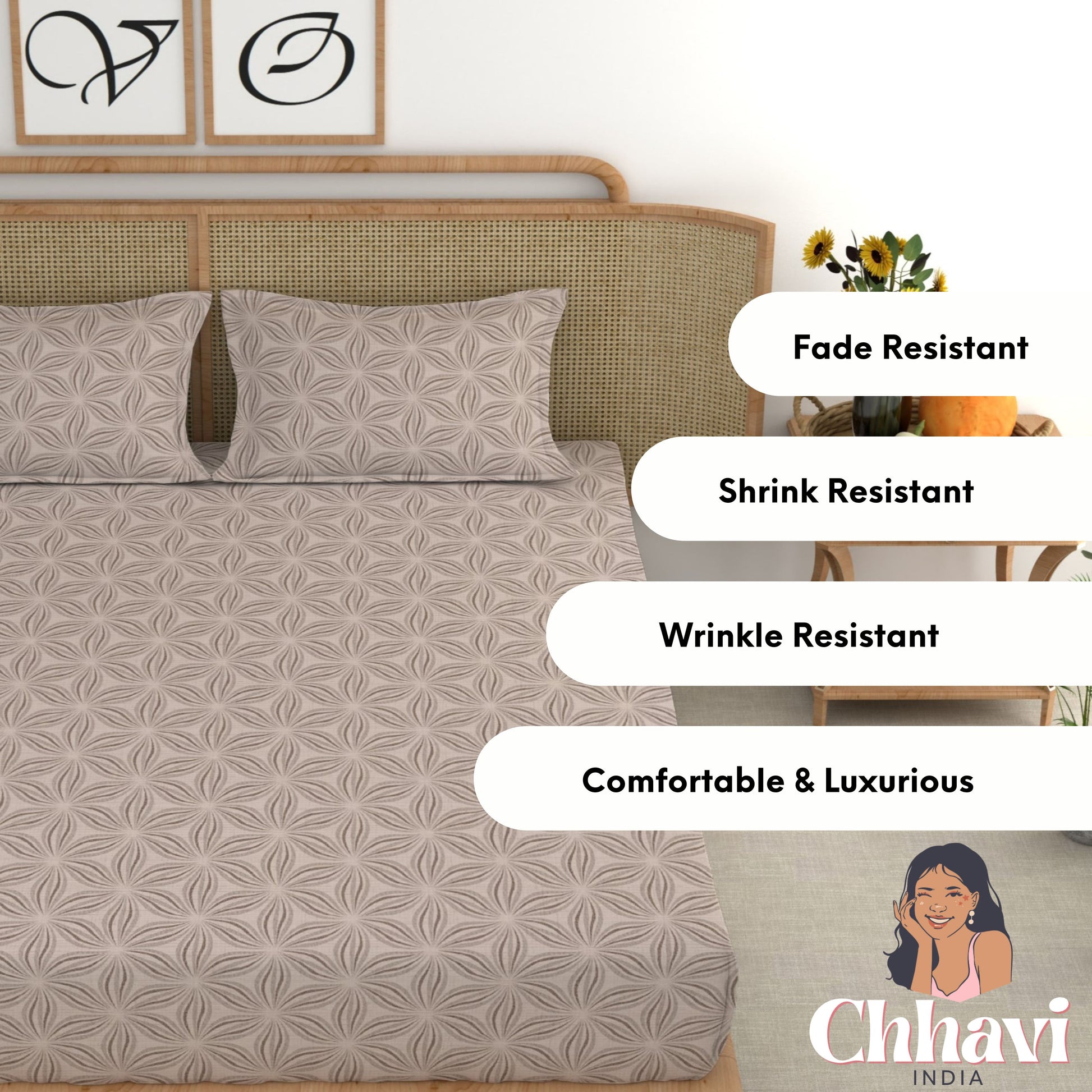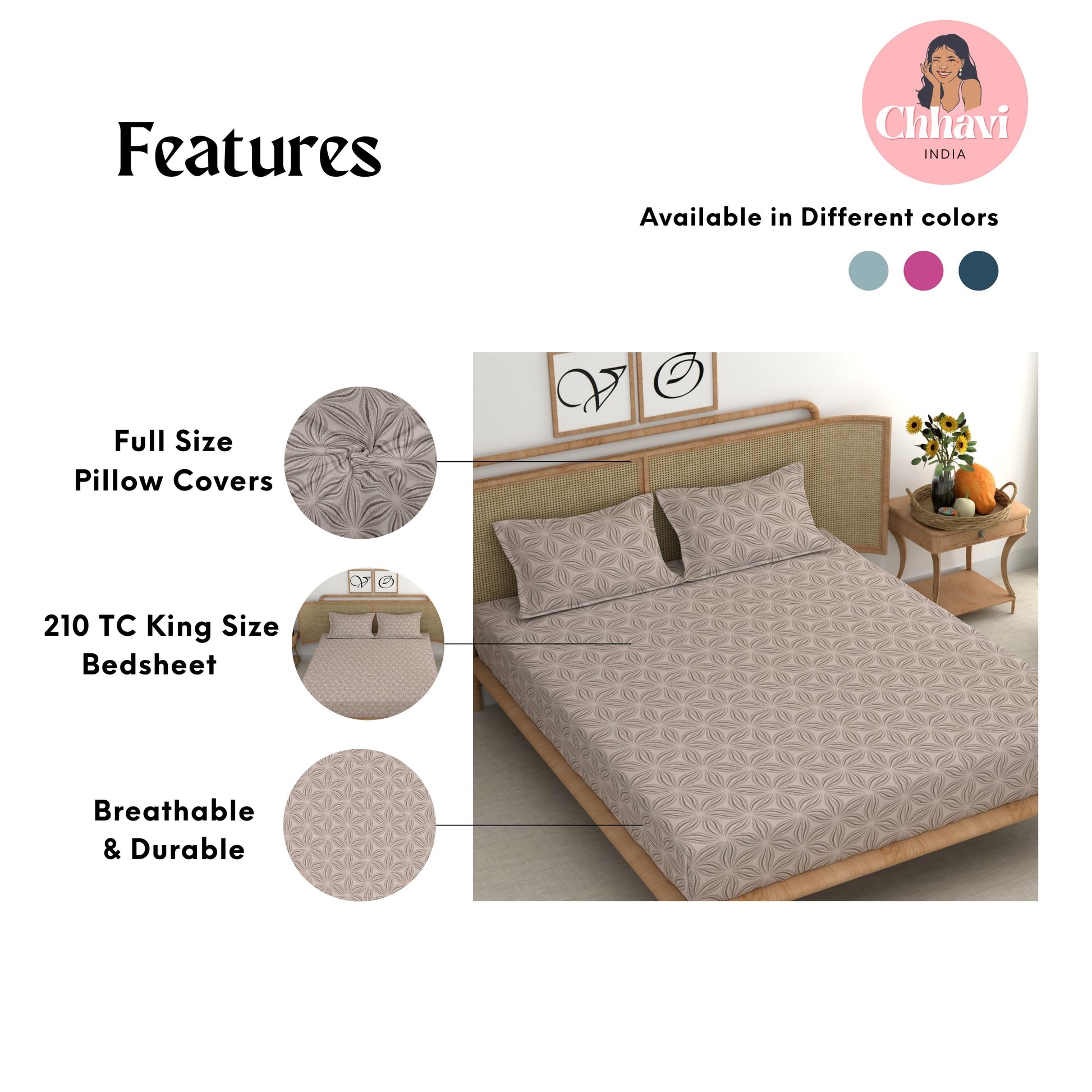Give your bedroom a stylish makeover with this beautiful King size bedsheet from CHHAVI INDIA Inspired by nature, the bedsheet is 100% premium quality microfiber that is soft to touch and comfortable on the skin. It delivers maximum relaxation and comfort while sleeping. Suitable for all seasons and a perfect addition to your bedroom linen!