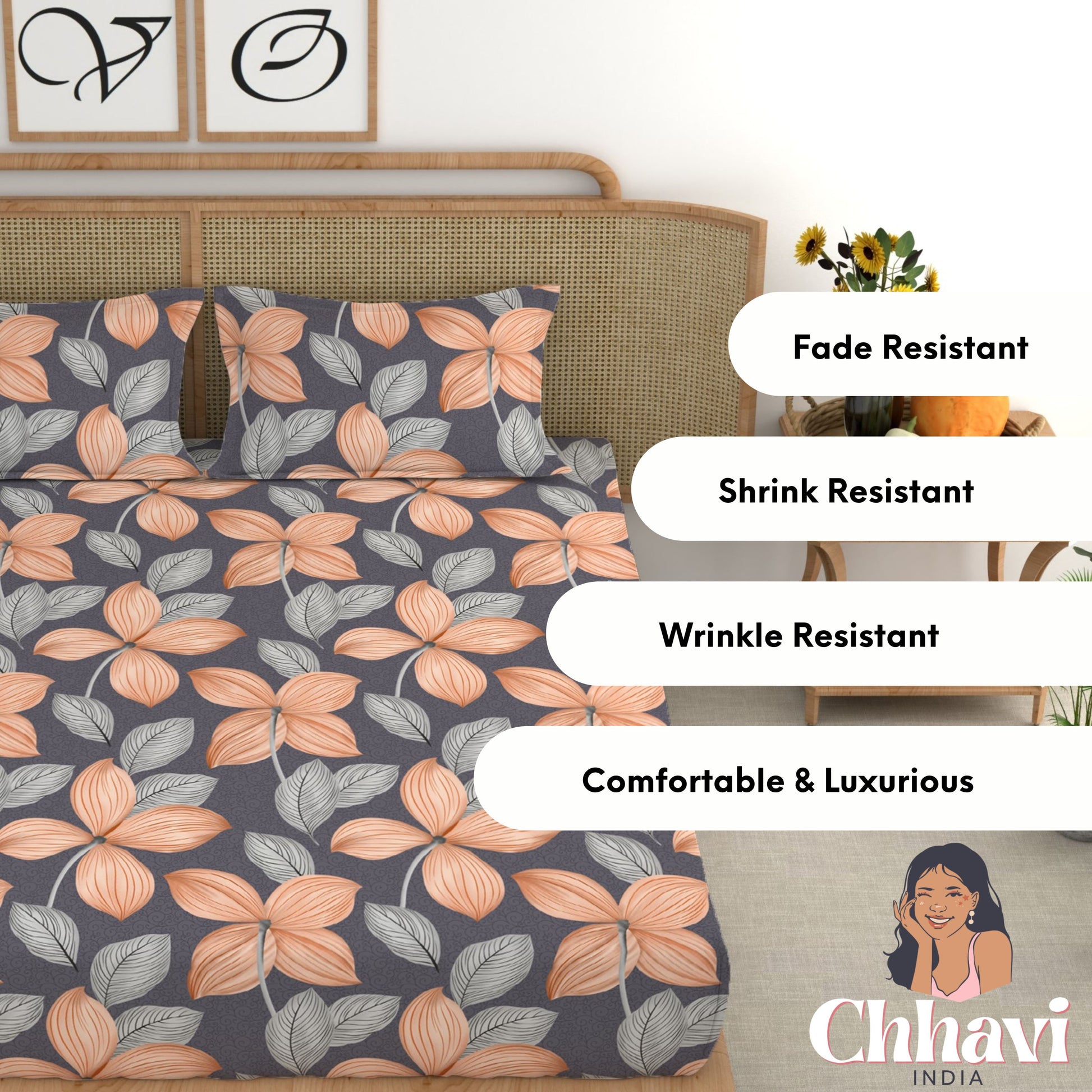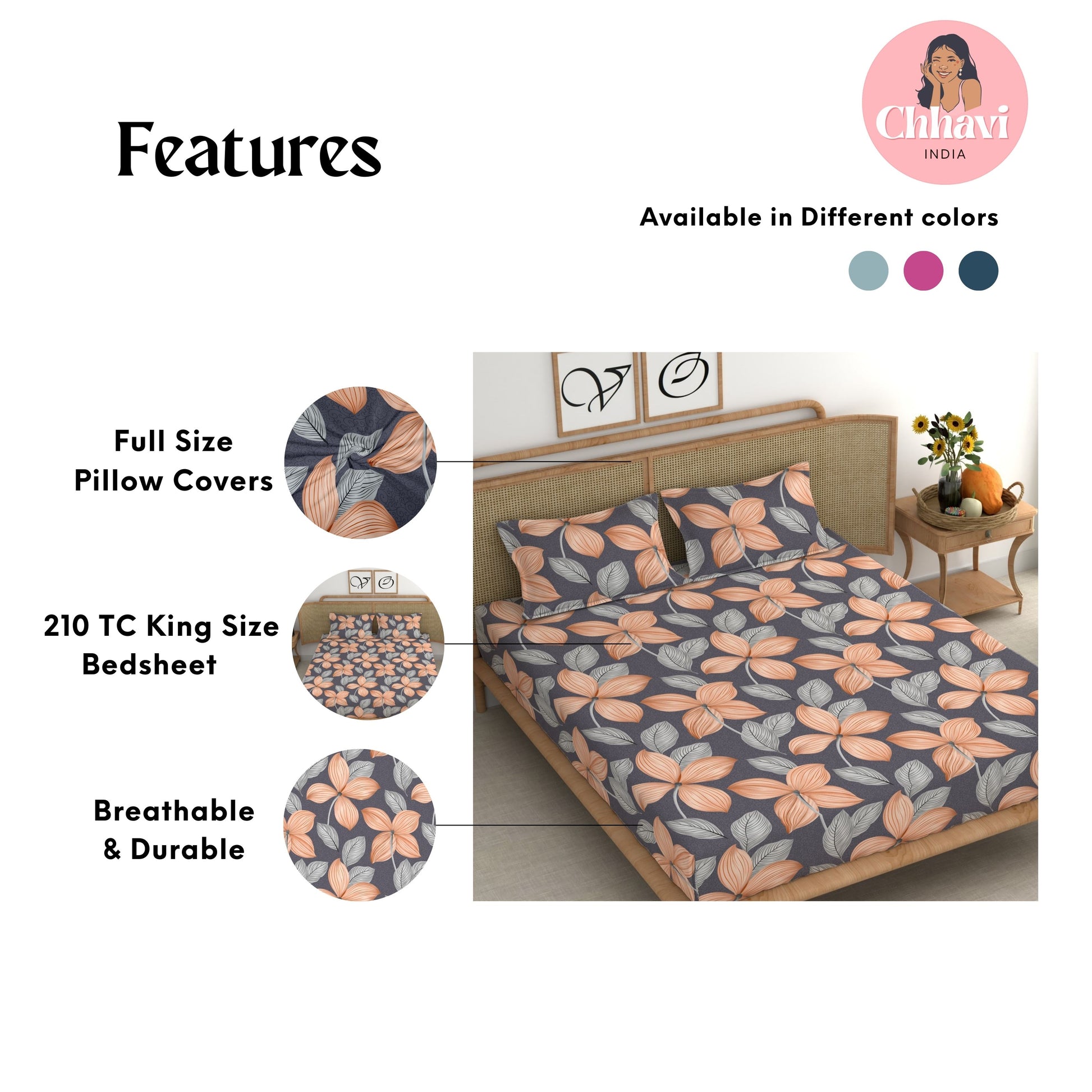 Give your bedroom a stylish makeover with this beautiful King size bedsheet from CHHAVI INDIA Inspired by nature, the bedsheet is 100% premium quality microfiber that is soft to touch and comfortable on the skin. It delivers maximum relaxation and comfort while sleeping. Suitable for all seasons and a perfect addition to your bedroom linen!