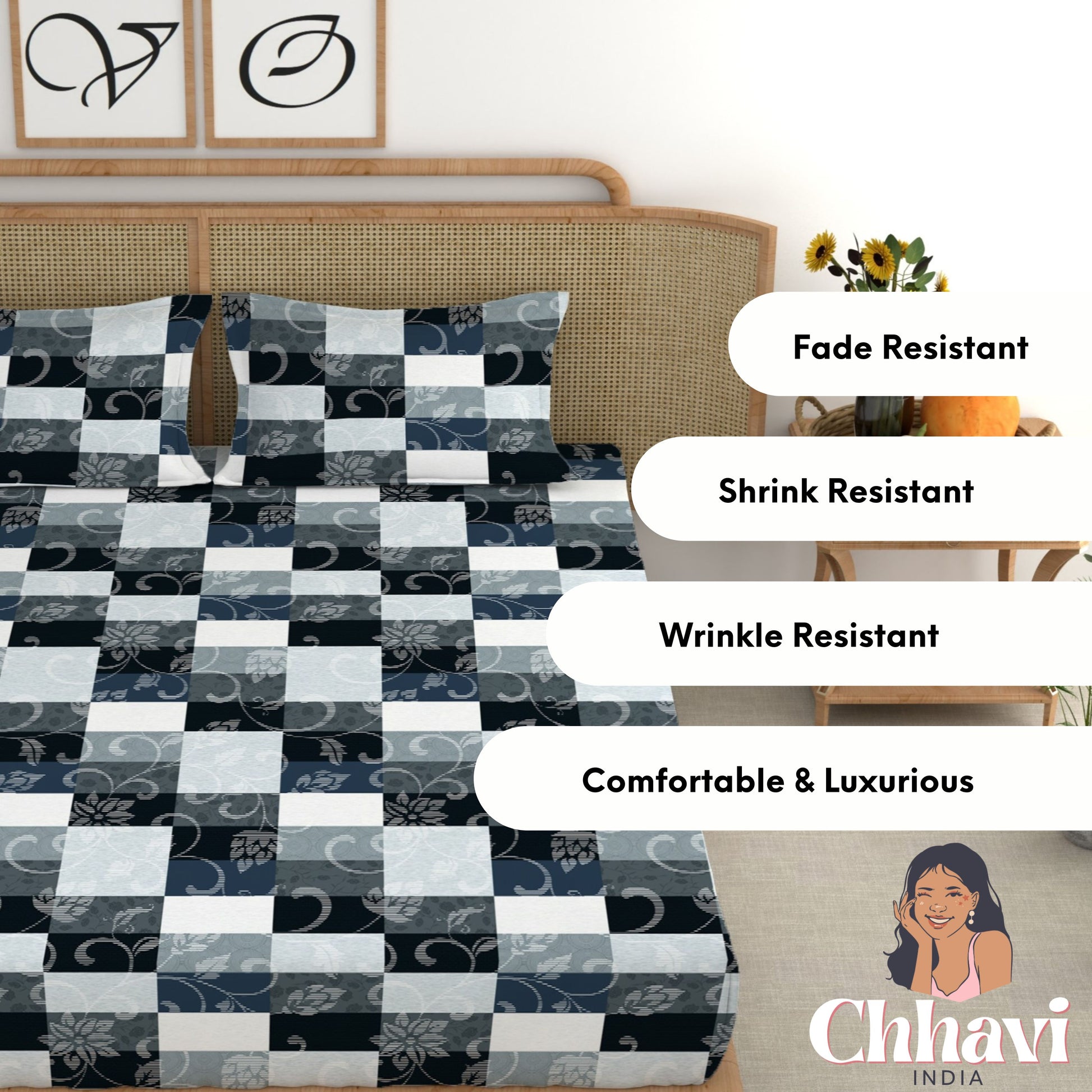 Give your bedroom a stylish makeover with this beautiful King size bedsheet from CHHAVI INDIA Inspired by nature, the bedsheet is 100% premium quality microfiber that is soft to touch and comfortable on the skin. It delivers maximum relaxation and comfort while sleeping. Suitable for all seasons and a perfect addition to your bedroom linen!