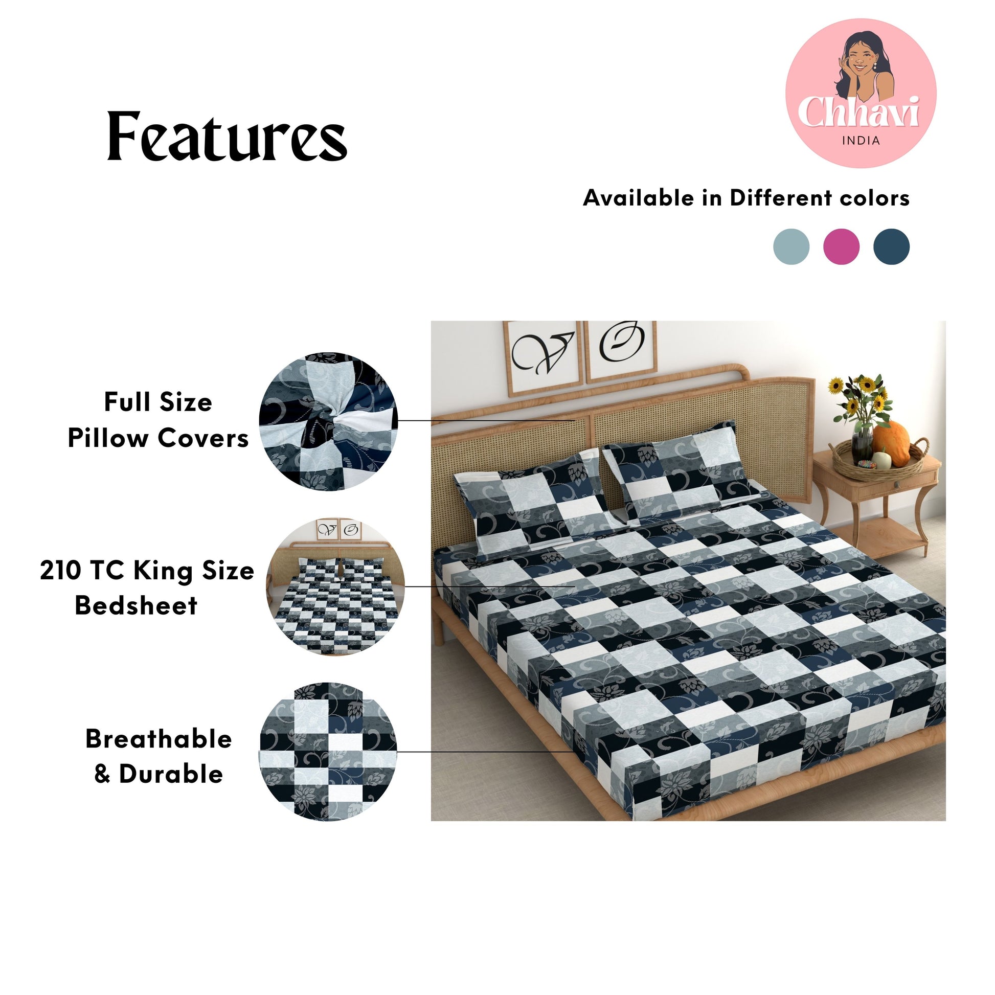- Pack Contents – 1 King Size Bedsheet with 2 pillow cover