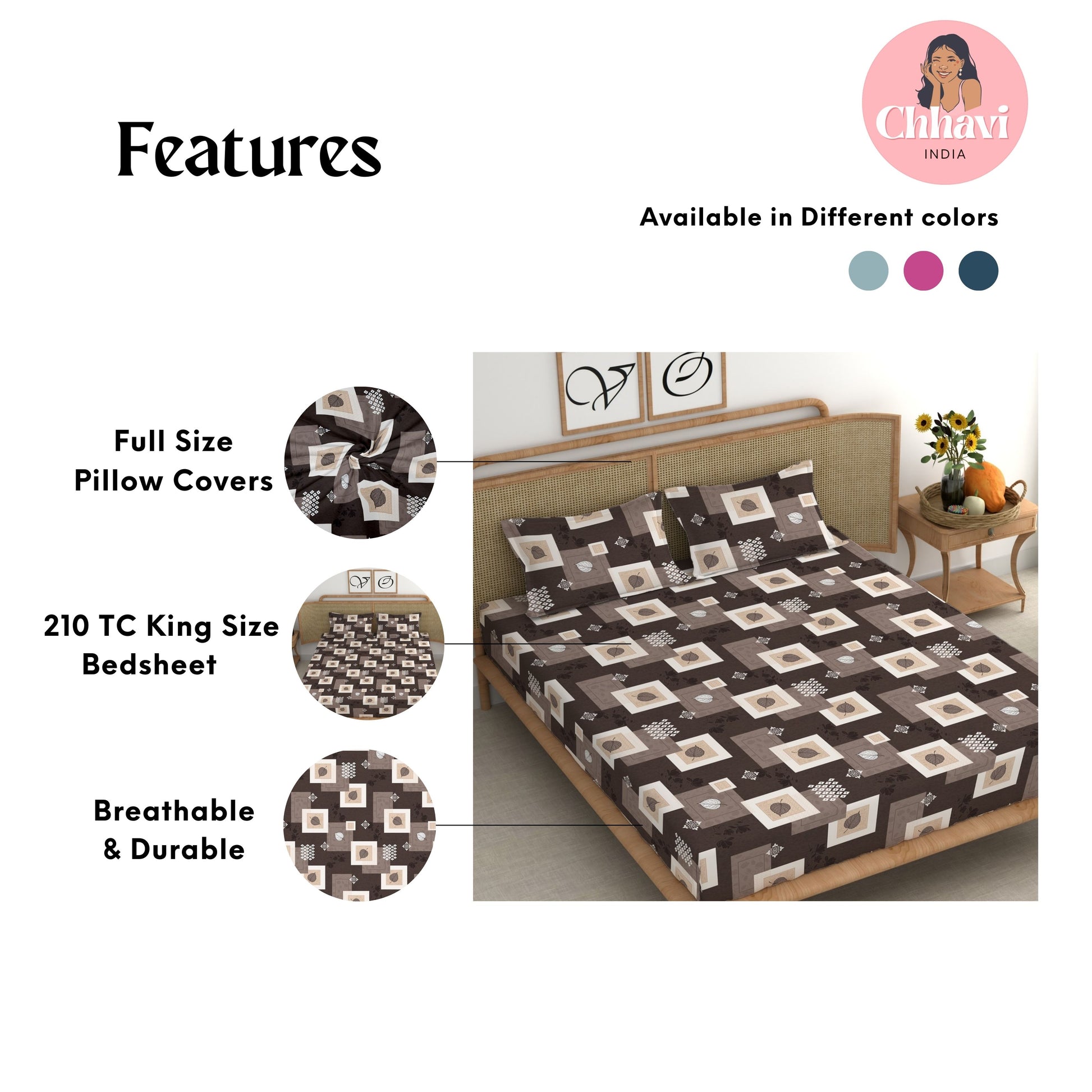 Give your bedroom a stylish makeover with this beautiful King size bedsheet from CHHAVI INDIA Inspired by nature, the bedsheet is 100% premium quality microfiber that is soft to touch and comfortable on the skin. It delivers maximum relaxation and comfort while sleeping. Suitable for all seasons and a perfect addition to your bedroom linen!