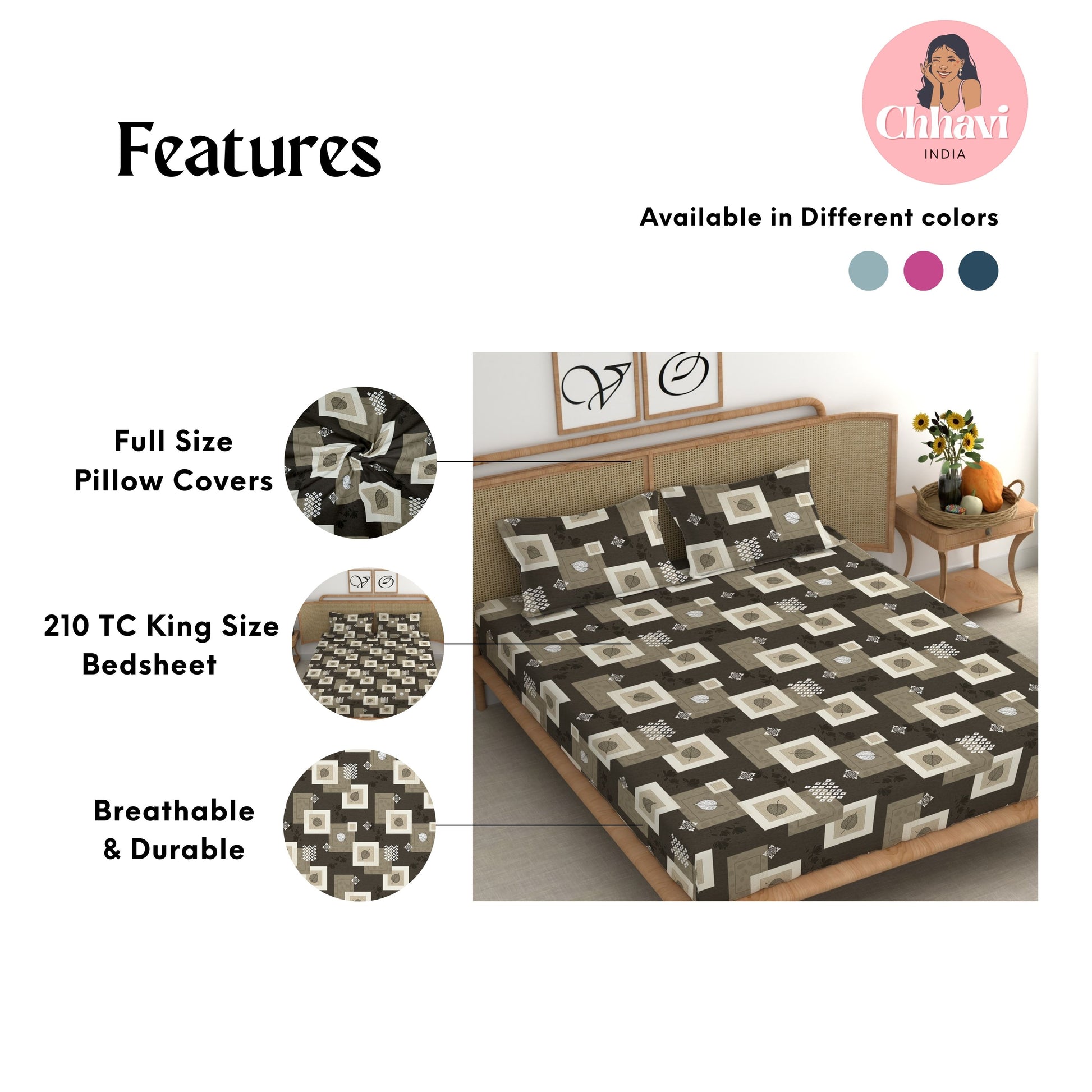 CHHAVI INDIA 210 TC Microfiber Printed King Size Bedsheet With Pillow Covers