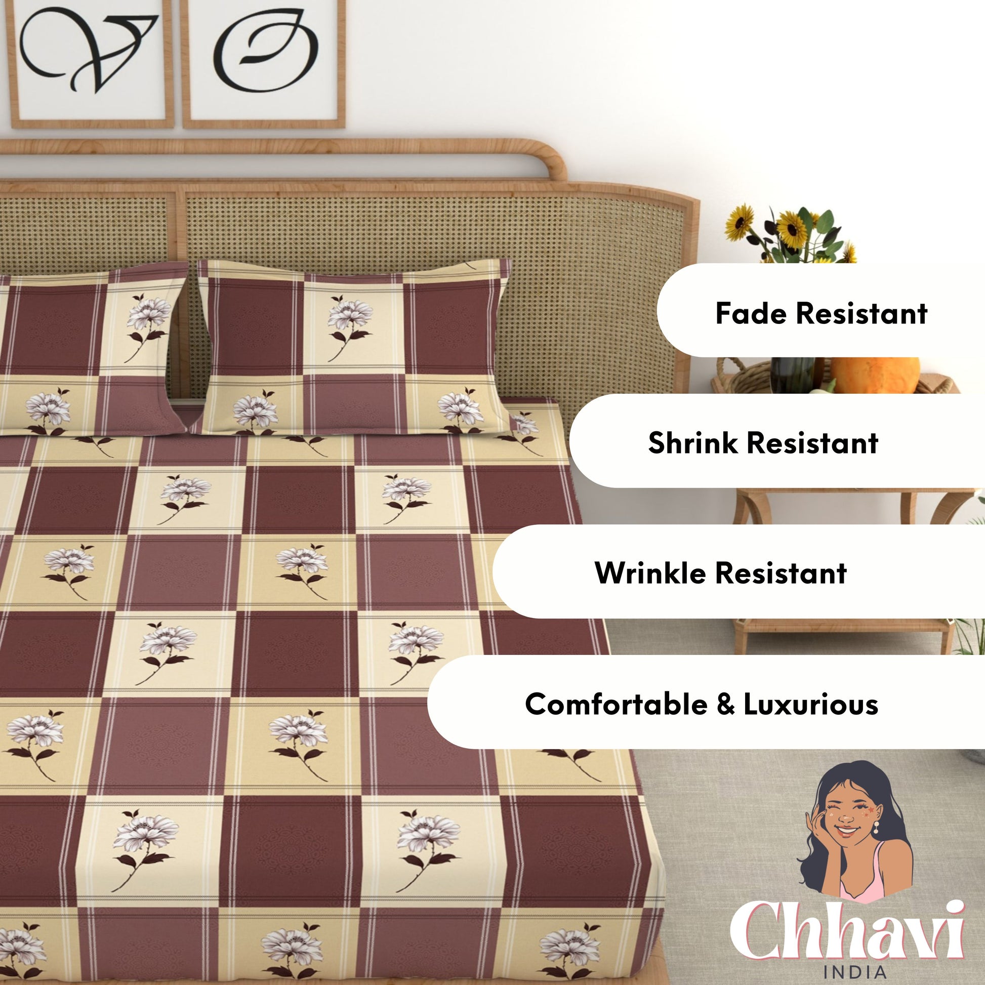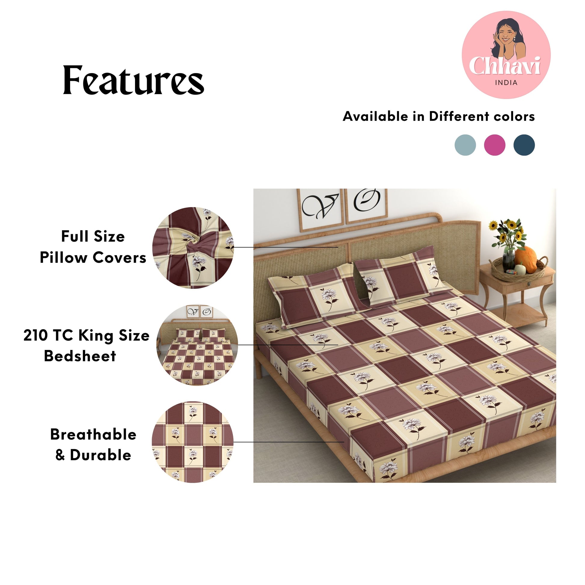 Give your bedroom a stylish makeover with this beautiful King size bedsheet from CHHAVI INDIA Inspired by nature, the bedsheet is 100% premium quality microfiber that is soft to touch and comfortable on the skin. It delivers maximum relaxation and comfort while sleeping. Suitable for all seasons and a perfect addition to your bedroom linen!