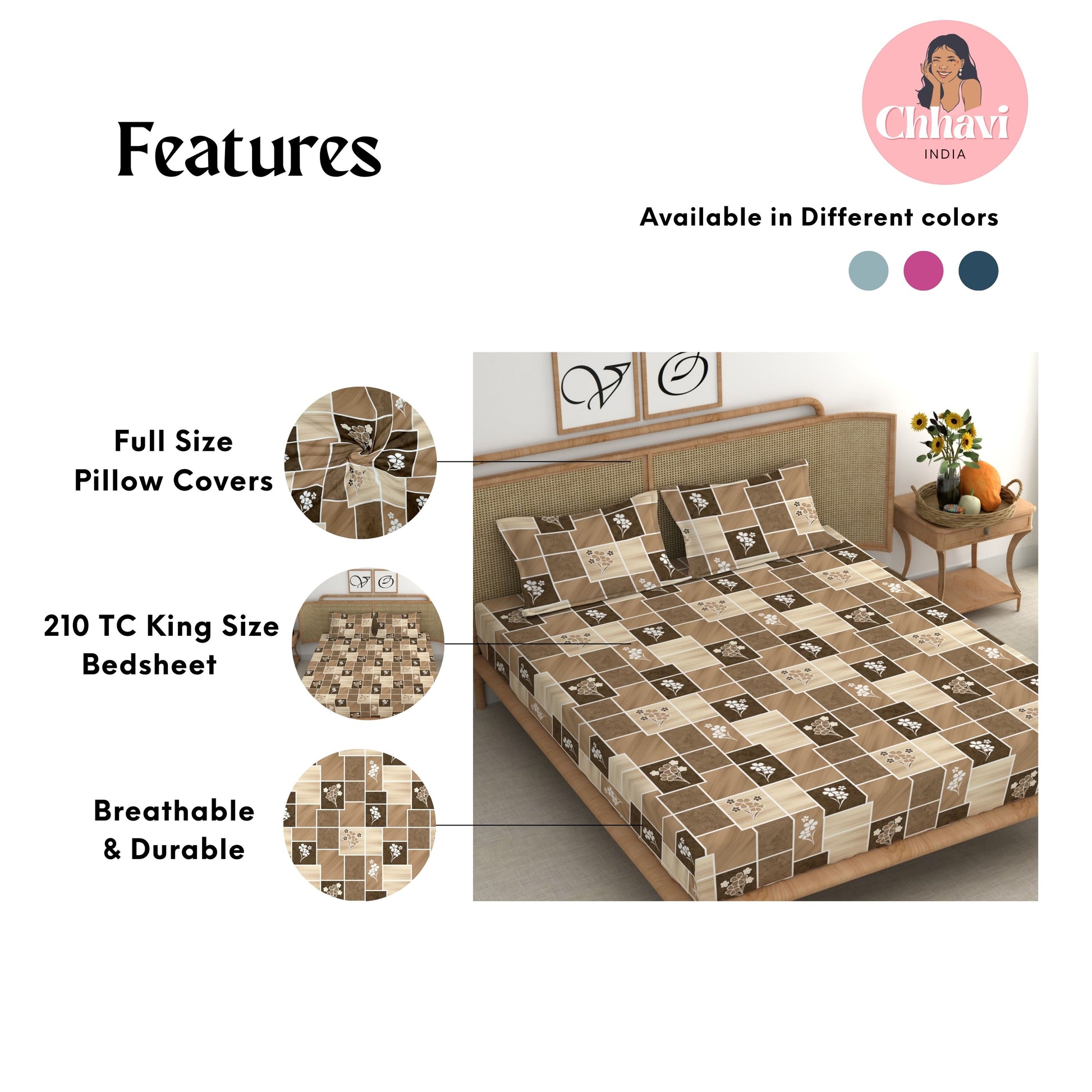 CHHAVI INDIA 210 TC Microfiber Printed King Size Bedsheet With Pillow Covers